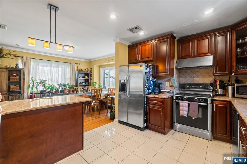Welcome to this beautifully maintained 1,629 sq. ft. Colonial that perfectly blends classic suburban charm with modern mechanical upgrades. Situated in the heart of Leonia, this 3-bedroom, 2-bathroom home offers a versatile layout and a premier location for NYC commuters. Inside, gleaming hardwood floors flow throughout, leading from the spacious living area to a bright family room featuring a cozy gas fireplace. The main kitchen is complemented by a full second kitchen in the basement, making this home ideal for multi-generational living or grand-scale entertaining. You will stay comfortable year-round with Central AC and steam heat, enhanced by a built-in humidifier and recently added dedicated heat pumps in both the family room and the basement. Peace of mind comes standard with updated infrastructure, including a new hot water heater (2025) and a 2017 boiler. The home features a new Whirlpool Duet washer/dryer and a new basement refrigerator. Outside, a long driveway provides ample off-street parking. Located just minutes from the George Washington Bridge, you are just one block from NJ Transit bus routes for a quick commute to Port Authority. Enjoy being about a mile from the 800-acre Overpeck County Park and the vibrant Broad Avenue dining district. This is a rare find that combines modern efficiency with a "commuter's dream" location.