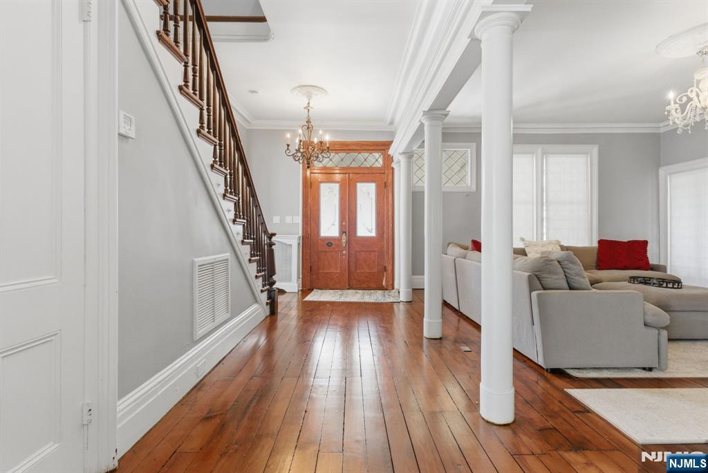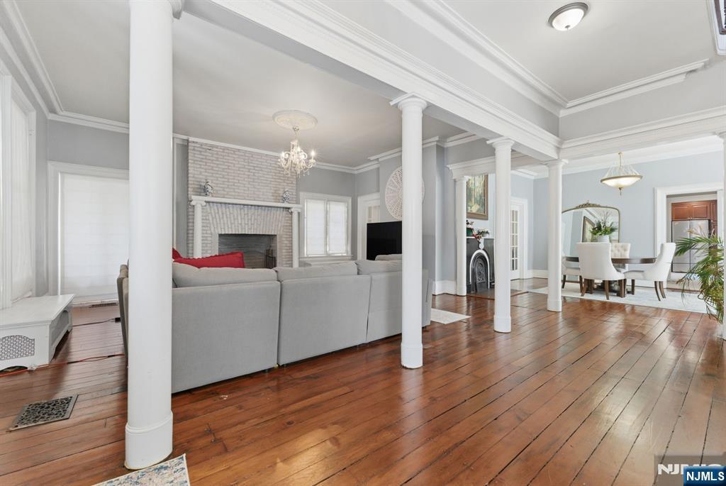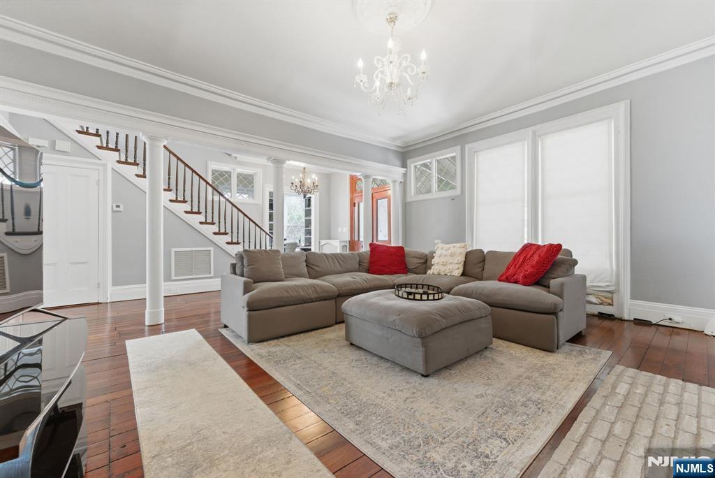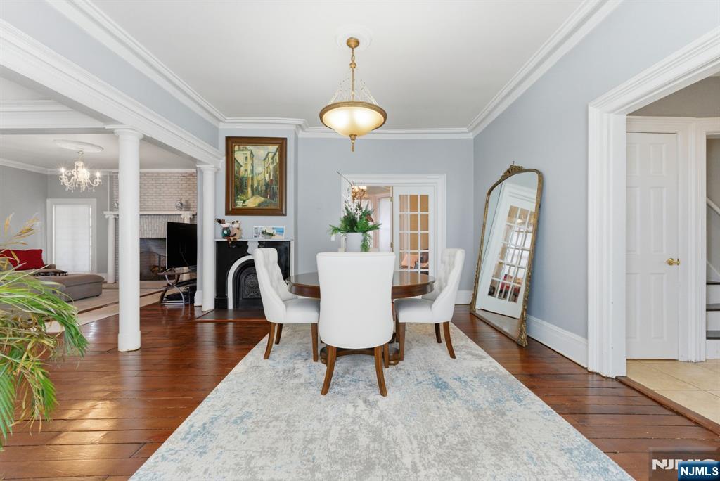 Welcome to Palisade Manor, where Gingerbread Victorian charm and modern updates blend across three full levels of living, creating a timeless space for warmth and entertaining just steps from downtown Englewood - one of NJ’s most sought-after towns. An enclosed wraparound porch sets the tone, leading into a light-filled interior with soaring ceilings, intricate moldings, original hardwood floors, and 3 wood-burning fireplaces. The main level flows seamlessly from the living room to the formal dining room and into a private study with French doors, offering an open yet functional layout. The renovated chef’s kitchen features cherry cabinetry, granite countertops, stainless steel appliances, dual sinks, a center island, and a secondary butler’s staircase for added convenience. The second floor boasts a primary suite with fireplace, bay window sitting area, and spa-like bath with tub and separate shower, while additional generously sized bedrooms include an enclosed Florida room off the 3rd bedroom above the rear deck. The third floor provides flexible space for bedrooms, office, or gym. A full, clean, unfinished walkout basement offers storage and future potential. Modern comforts include a 2-year-old water heater, multi-zone central A/C, natural gas heat, public water and sewer. Private rear driveway parking off Hillside Ave., close proximity to downtown shops, dining, and parks, etc. Bus to NYC directly in front of house on Palisade make this the ultimate commuter's dre