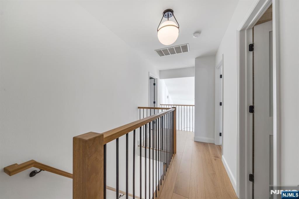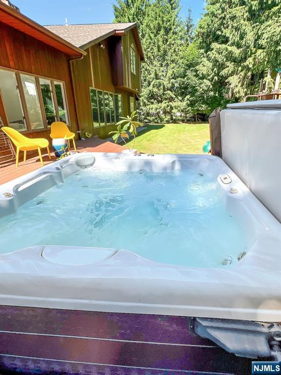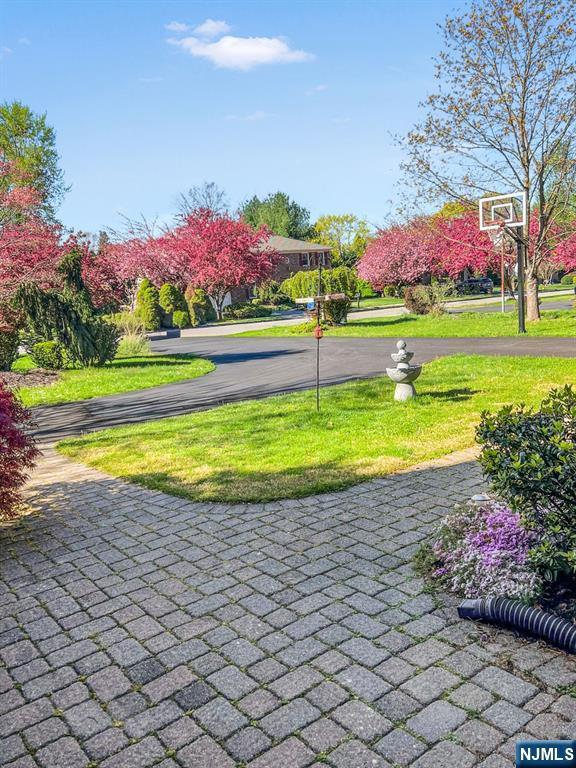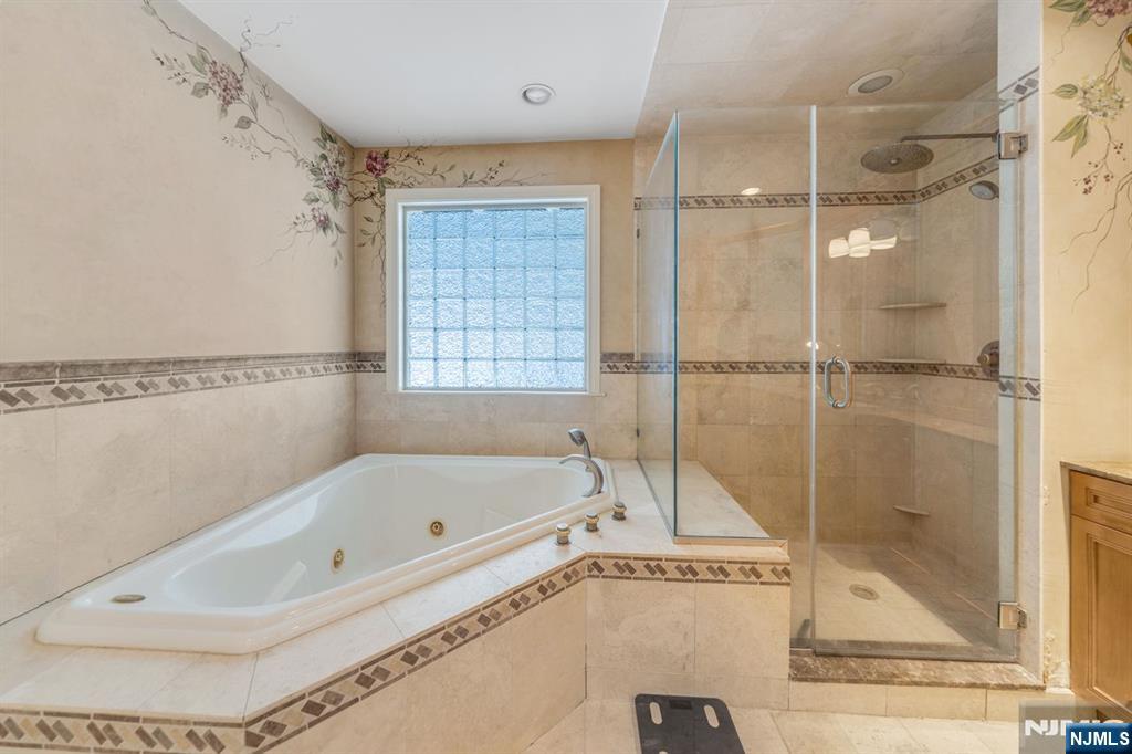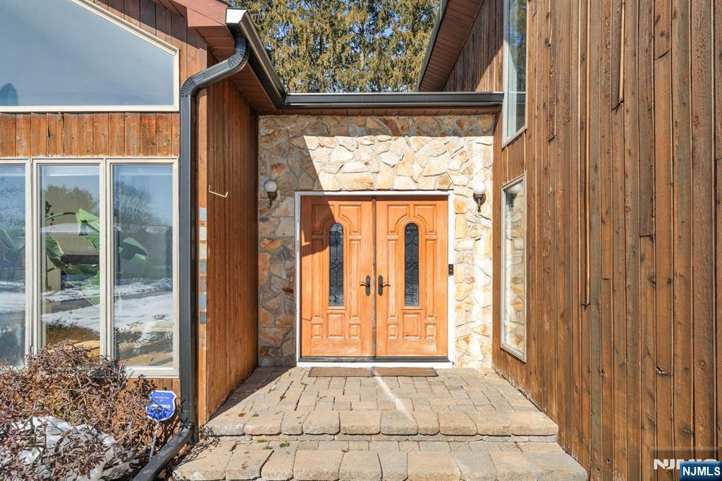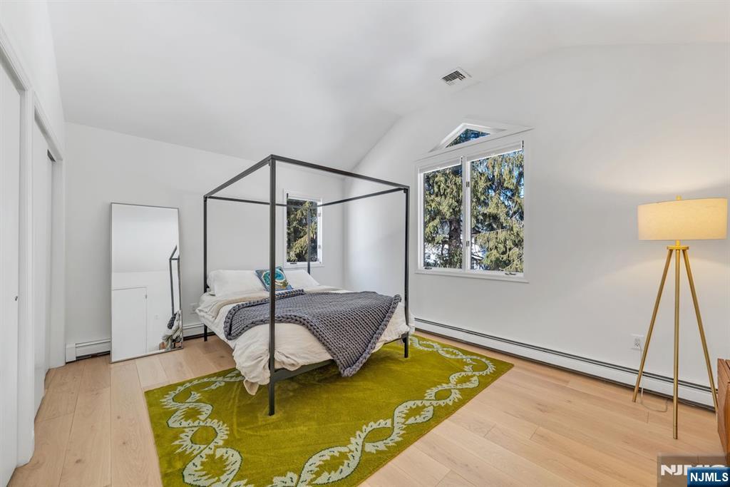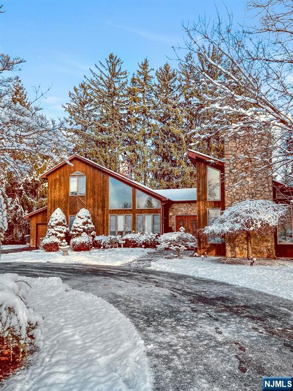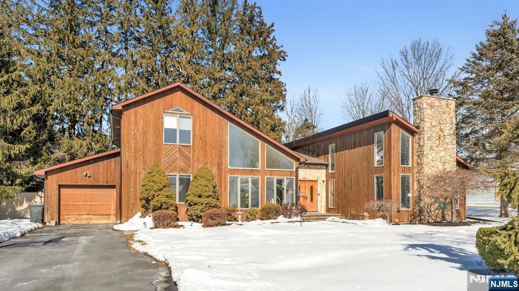 This exceptional South facing 4 bdrm, 3 bath contemporary residence is tucked away on a peaceful cul-de-sac, offering a perfect blend of style, and comfort. A wraparound driveway leads to a welcoming entry foyer that sets the tone once you step inside. The home has been thoughtfully updated with brand-new hardwood floors, new interior doors, fresh paint, new recessed lighting, new furnace and hvac system. The expansive living room is filled with natural light from floor to ceiling windows and skylights, anchored by a stone fireplace that creates a warm atmosphere. Just off this space, you'll find a convenient first-floor bdrm and full bath. The main living room showcases cathedral ceilings and an additional fireplace, flowing seamlessly into a sunken formal dining area designed for intimate dinners and gatherings. The adjacent kitchen is thoughtfully appointed with stainless steel appliances, custom cabinetry, dual wall ovens, a center island cooktop, and granite countertops. The first floor primary suite offers privacy and comfort, complete with a seated vanity, glass enclosed shower, and a relaxing jacuzzi tub. Upstairs, two generously sized bedrooms share a full bathroom with a storage vanity and glass enclosed shower. Outside, the spacious backyard serves as your own oasis with a large deck and jacuzzi, perfect for entertaining or simply unwinding. The fenced in yard offers plenty of room for outdoor enjoyment. Conveniently located near Whole Foods, Lidl, and NJ transit!