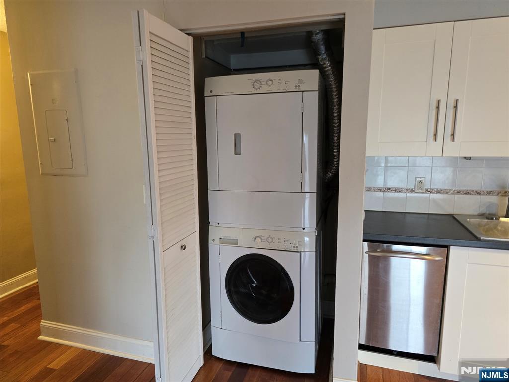 Welcome home to this bright and spacious corner one-bedroom apartment offering comfort, convenience, and location. Enjoy a private balcony, in-unit laundry, and a modern kitchen with stainless steel appliances, including a dishwasher, and a newly installed quartz countertop island. The fitness room is located on the same floor, along with a storage unit, and the building offers elevator access from the ground floor. One covered parking space included. Updated heating and air conditioning units throughout. Conveniently located near major highways and public transportation, providing easy access to NYC, and just 3 blocks away from the shops and restaurants along Main Street in Hackensack.