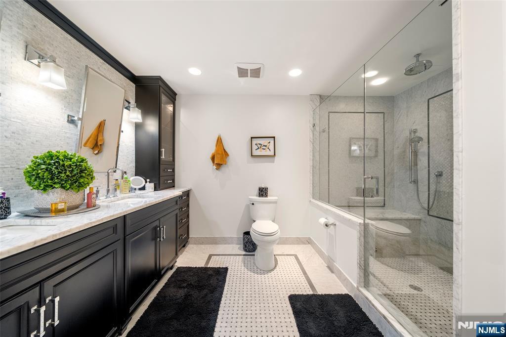Welcome to 5 Lakeview Drive in the highly desirable Lakeview Estates of Old Tappan. This beautifully updated 3-bedroom, 4-bath townhome offers an open layout with soaring ceilings and abundant natural light. A Stunning two-story foyer opens to an impressive great room with fireplace and oversized windows, creating an airy and inviting space. The dining area flows seamlessly into a renovated kitchen with modern finishes and a bright breakfast area with sliding doors leading to a private deck with peaceful lake views. The first-floor primary suite features a vaulted ceiling, walk-in closet, and a spa-like bath with elegant finishes. Upstairs, two generously sized bedrooms are complemented by a renovated second-floor bathroom. The fully finished lower level provides additional living space with a large family room, bonus room ideal for office or gym, and a renovated half bath. A true highlight is the full-sized, attached two-car garage with two separate garage doors direct interior access, featuring brand-new epoxy flooring and new garage openers with built-in cameras. This rare feature offers protected parking and valuable storage. Residents enjoy access to the clubhouse, pool, fitness center, and tree-lined streets. Convenient to shopping, dining, and NYC transportation, and located in Old Tappan’s top-rated school district. A rare opportunity to own a turnkey home in one of Bergen County’s most desirable communities.