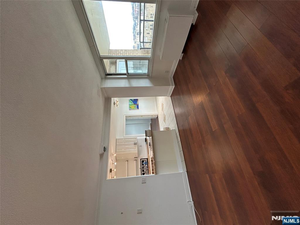 Welcome to sought-after Northbridge Park! Beautifully updated oversized one bedroom one bath west facing "W" line on upper floor. Entry foyer with ceramic tiled floor, large bright living room with engineered wood flooring, renovated eat-in kitchen with custom cabinets, granite counter tops, ceramic tile floors and access to private covered balcony. Sizable bedroom with large closet, engineered wood flooring and access to renovated full bath offering a shower/tub combination, travertine marble flooring and shower surround. Creative work space accessed from the bedroom or foyer. Amenities abound! Recently renovated lobby and common areas, doorman/security, on-floor laundry, Exercise room, Tennis, Pickle, Heated pool, Childs play ground, On-site management. Come see, there's more! OPEN HOUSE SUNDAY 2/22 from 11A to 1P COME SEE! Downtown Fort Lee at your doorstep offering retail, shopping, restaurants! Nearby Park, House of worship, School. EZ access to mass transit, GWB and NYC.