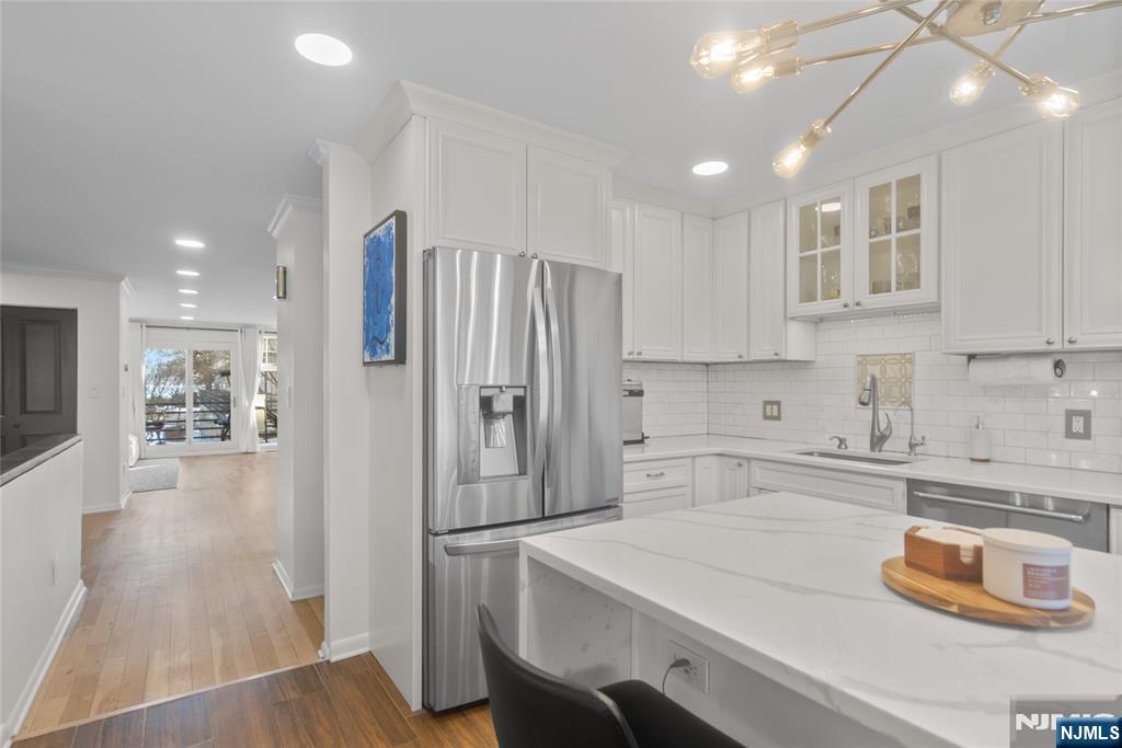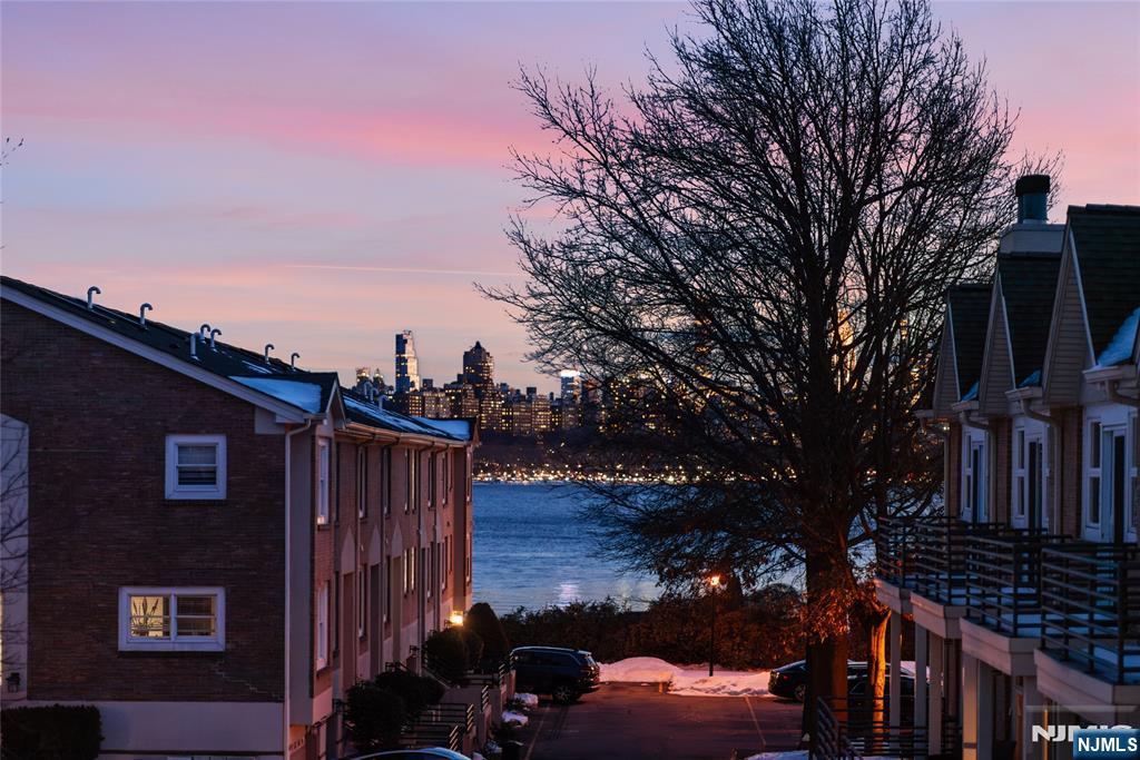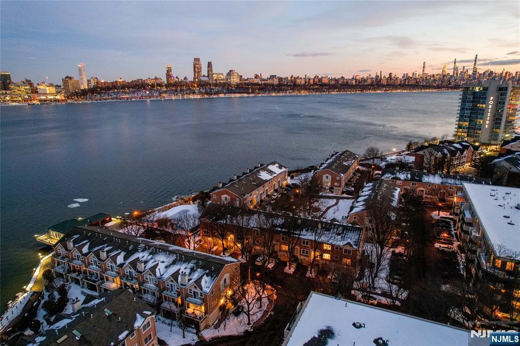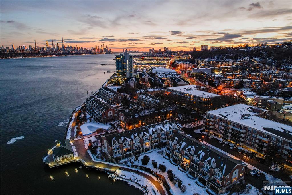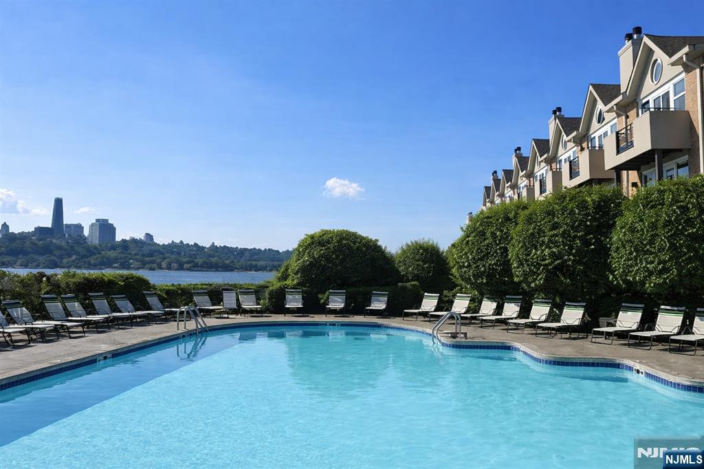 Impeccably updated 3-level townhome in the gated waterfront community of Grand Cove in Edgewater with NYC views! This residence has been extensively renovated and enhanced with high-end finishes, offering a truly move-in ready experience with every detail thoughtfully executed. The designer kitchen showcases stainless steel appliances, Quartz countertops and custom cabinetry, flowing seamlessly into the open concept living and dining areas. A fireplace anchors the living room, while the large southeast-facing terrace fills the space with beautiful natural light. The primary suite offers its own private terrace and a spa-inspired ensuite bath featuring a Kohler Air Bath spa tub, frameless rain shower, RH hardware and Toto washlet. The second bedroom includes its own full ensuite bath. Laundry is conveniently located on the bedroom level. Custom built closets maximize storage throughout. The ground level provides an expansive family room with walkout patio, easily functioning as a third bedroom or flexible living space, complete with a rare full third bathroom unique to this layout. Rich hardwood flooring runs throughout the home. HOA includes internet and cable. Community offers NYC views from the pool, 24/7 gated community with package storage and clubhouse rental with Manhattan views. Exceptional location directly beside Whole Foods and the #158 bus to NYC and shuttle bus to ferry terminal, with Mitsuwa, Trader Joe’s, shops and restaurants just minutes away.