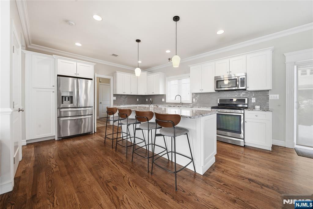 Welcome to this stunning modern Colonial residence in the heart of New Milford, NJ, offering refined design and an inviting open-concept layout. The main level features a beautifully appointed kitchen, elegant dining area, and a sun-drenched living room anchored by a sophisticated fireplace, along with a stylish powder room for guests. Upstairs, retreat to the expansive primary suite complete with a gorgeous full bath, custom California Closets, and exceptional comfort. Three additional generously sized bedrooms and a spa-like full hall bath provide ample space for family and guests. Sliding glass doors lead to a private deck and fully fenced backyardâ€â€perfect for seamless indoor-outdoor entertaining. Additional highlights include an attached garage with a Tesla charger, a paver driveway with abundant parking, and central air with forced hot air heat for year-round comfort.