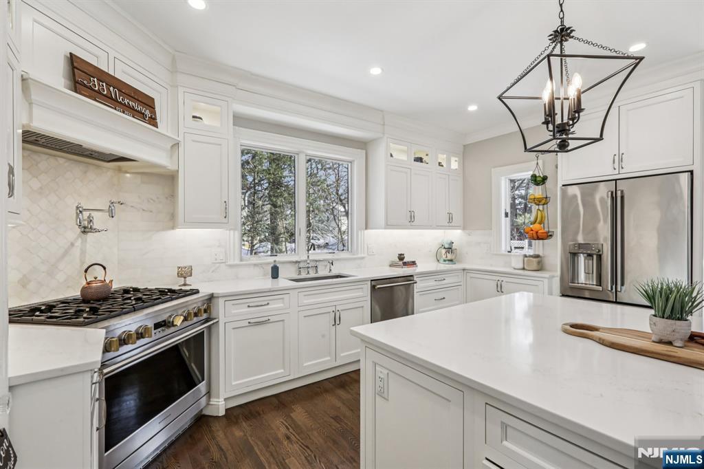 Welcome to this iconic Colonial, where an exceptional property offers a private oasis in the heart of many favorite amenities. Timeless character and thoughtful updates blend seamlessly throughout this spacious, sunlit home. Gracious rooms showcase artisanal architecture, high ceilings, large windows, and classic built-ins. The stunning, fully renovated Chef’s kitchen with center island and RO anchors the home and effortless flow to the main living spaces, perfect for everyday living & entertaining. Enjoy true indoor-outdoor living with a deck overlooking the lush backyard & inground pool. The 2nd floor features a serene primary ensuite with private office, ample closets & bathroom, plus 2 additional bedrooms & renovated hall bath. The 3rd floor offers a versatile teen suite/ office & storage. Basement includes a rec room, pantry, and guest area. Long circular driveway, three-car garage, & updated mechanical systems, pool liner, coping & patio complete this exceptional offering