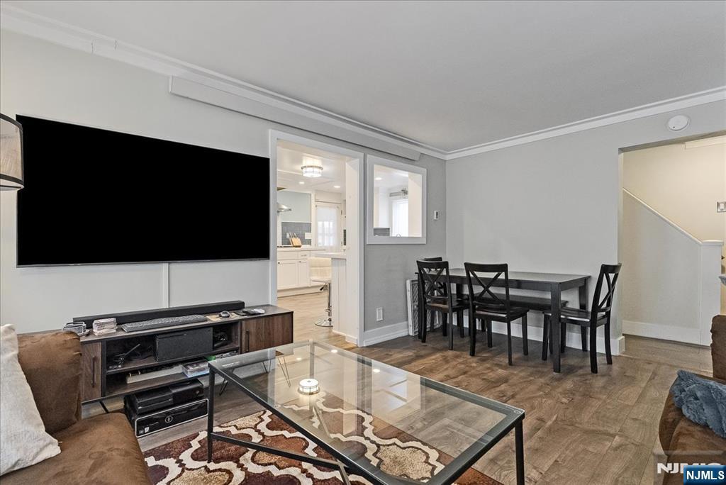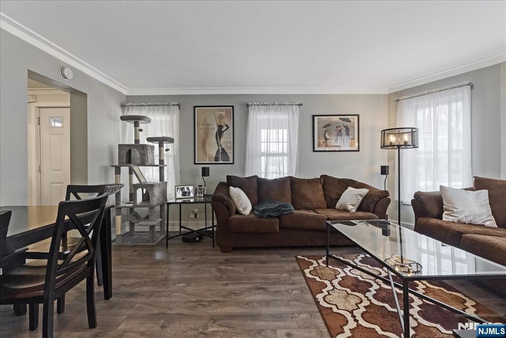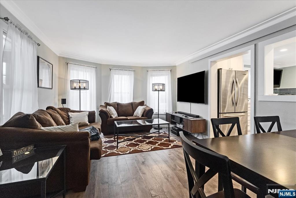 Step inside this inviting colonial style home through the enclosed front porch. A cozy spot to enjoy your morning coffee or unwind at the end of the day. The main level features a comfortable living room, with the layout flowing directly into the eat-in kitchen, where custom cabinetry provides both charm and ample storage, making it a practical and central hub of the home. The living area is thoughtfully set apart from the bedrooms, offering added privacy and separation between gathering and resting spaces. The second floor offers two generously sized bedrooms and a full updated bathroom, thoughtfully arranged for everyday living. Additionally, there is a full unfinished walkup attic. The full unfinished basement provides generous storage space and includes a dedicated laundry area, with plenty of potential to customize to your needs. Outside, a patio overlooks the large backyard. Perfect for entertaining, gardening, or simply enjoying your own private outdoor space. This home is ideally situated in a quiet, established neighborhood, nearby parks and schools, and convenient access to shopping, dining, and NY/NJ commuter routes.