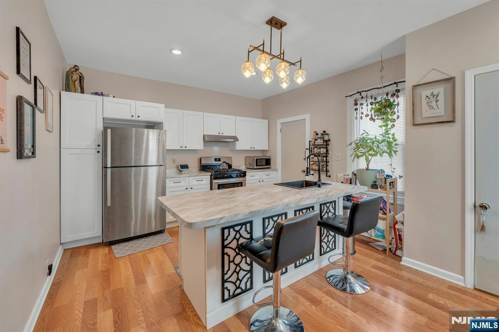 Arlington Section vinyl-sided updated 2-family, only 1 block to NJ Transit bus #40 to Harrison PATH! 1st floor has Living/dining room, kitchen, 1 bedroom and full bath, 2nd floor has Living room, kitchen, 2 bedrooms, full bath & walk-up attic to finished room. Full unfinished basement with laundry hookups. 1 gas steam radiator furnace, 1 hot water, 2 separate gas & electric meters. The 1st floor will be delivered vacant at closing. 2nd floor currently rented for $1,750 per month, on a month-to-month basis. Kitchens & baths were renovated a few years ago.