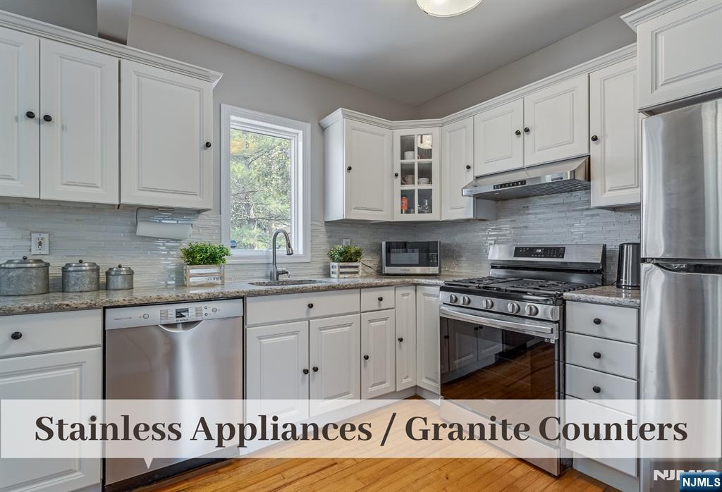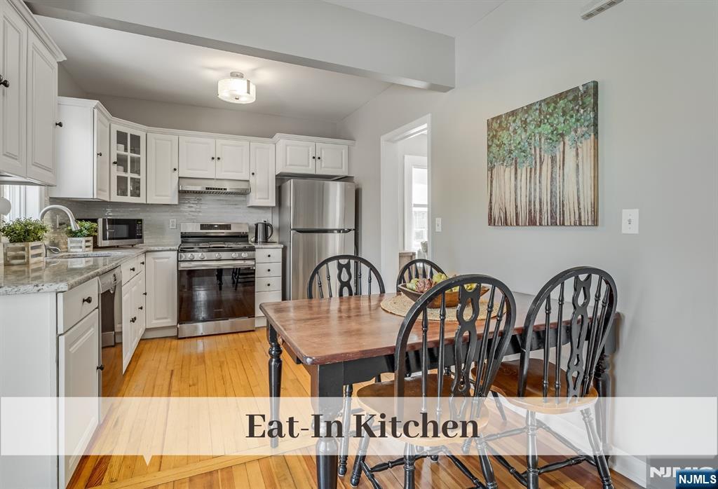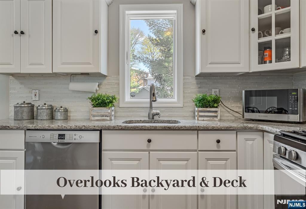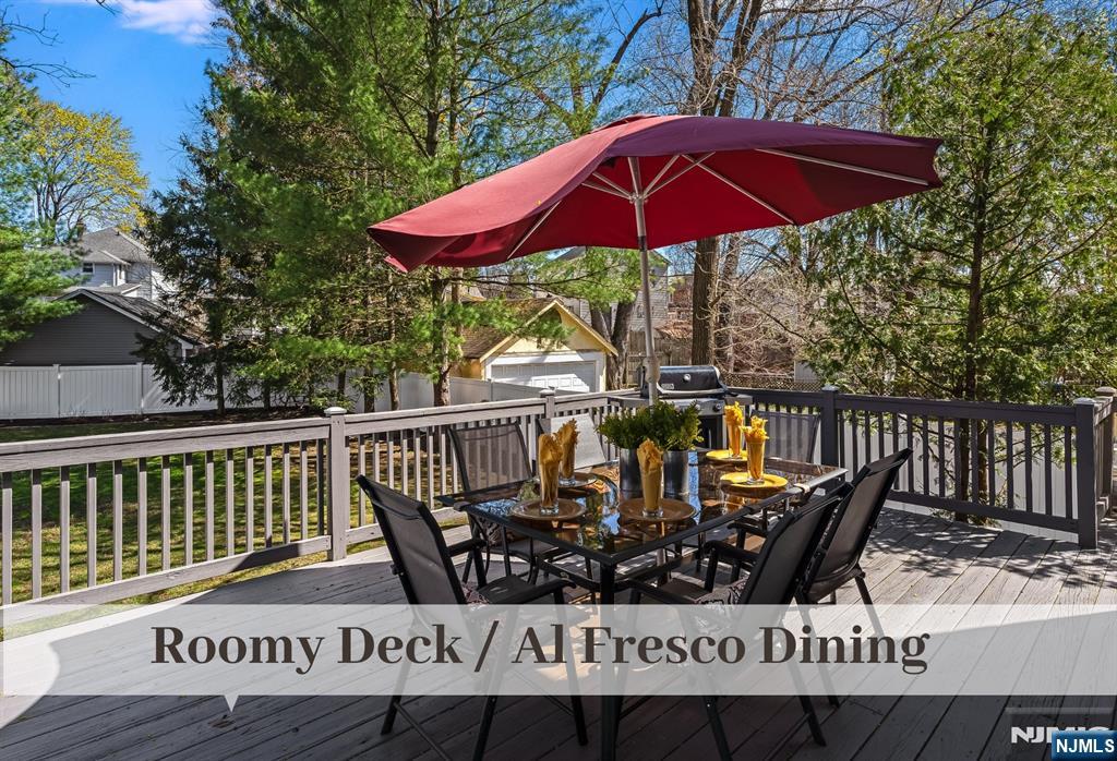 Storybook Sidehall Colonial, just moments to Train, Schools, Shopping & Restaurants, is brimming with charm and sunlit, inviting spaces. Brick Walkway leads to Covered Front Door Entry. Expansive & Crisp Living Room with Double Seating Areas boasts a beautiful Fireplace Mantel, Mahogany Bordered Oak Floors, and Sconce Lighting. Stainless Appliances, Textured Glass Tiles, and Granite Counters complement fresh White Kitchen Cabinets. Nearby is convenient Eat-in Dining and Sliding Doors to a generous Deck for hosting those memorable Summer BBQs. Ascend to the 2nd Floor to find a Primary Bedroom with two closets, 2 additional Bedrooms, and a hall bath. 3rd Floor Bonus Space with amazing tucked-away Storage is ideal for a Home Office or Play Room. The Walkout Lower Level can be used as your Home Gym or Office. Fully Fenced Flat Grassed Deep Property. The oil tank is above ground & located in the basement. Be prepared to fall in love with this inviting home, ideally located just moments from everything Westwood has to offer.
