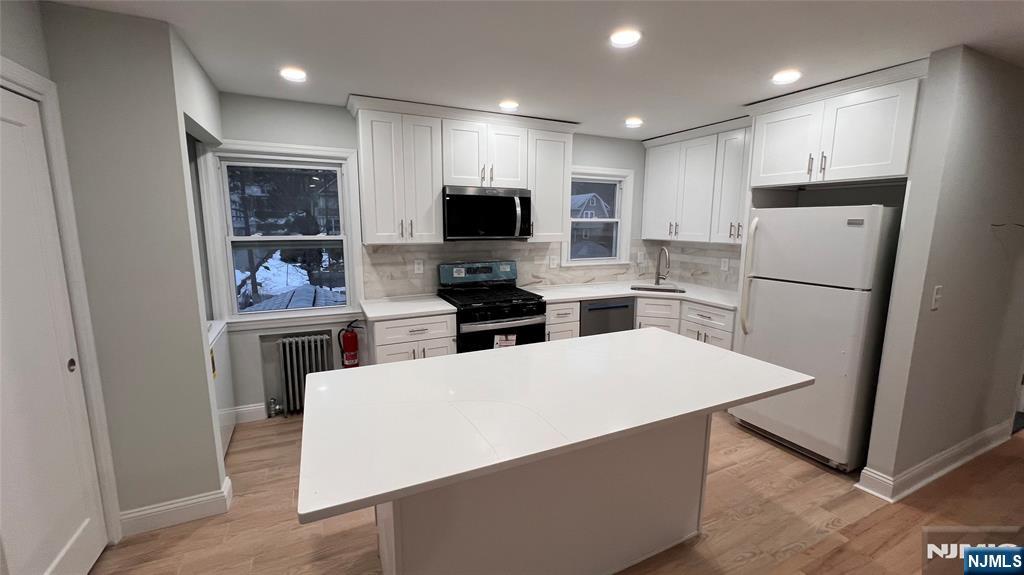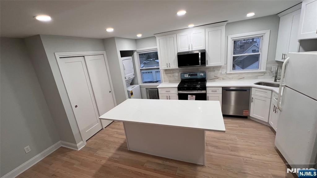 Great location! Steps from train & bus, Stop & Shop, restaurants, and everything vibrant Ridgewood has to offer. Newly renovated, bright and open floor plan. Brand-new kitchen with new flooring, island, quartz countertops & backsplash. New stove, microwave, dishwasher, and washer/dryer in unit. Newly refinished hardwood floors, brand-new full bath, freshly painted throughout. Excellent school system. 2 parking included. Tenant pays all utilities and shares snow removal & lawn maintenance. One car garage optional for additional fee.