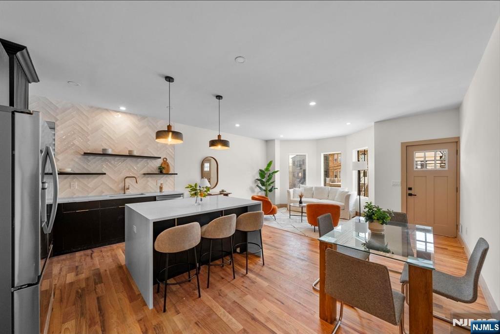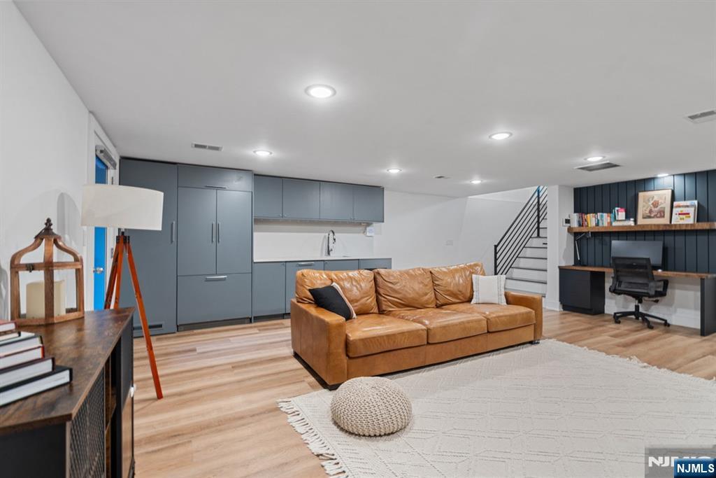This stunning 2,000+ SF duplex condo perfectly combines modern design, functionality, and comfort in one of Jersey City’s most desirable locations—just around the corner from the Grove Street PATH Train Station, making it a true commuter’s dream. Featuring two private entrances, two full kitchens, and three luxurious full bathrooms, this home offers exceptional flexibility for entertaining, extended stays, or multi-generational living. The main kitchen is a showpiece, boasting a custom panel refrigerator, wine cooler, dishwasher, and a cleverly designed pantry with a hidden built-in microwave. Elegant finishes and a fully open layout make this residence perfect for gatherings with friends and family. The bathrooms are dressed in large-format Porcelanosa tiles, offering a spa-like ambiance throughout. With over 1,200 square feet of outdoor living space, including your own private deck and backyard oasis, you’ll enjoy an effortless blend of indoor-outdoor living—ideal for relaxing or entertaining in style. The flexible layout includes three spacious bedrooms, multiple living areas, and the feel of two separate homes under one roof—ideal for hosting guests or creating private spaces for work and leisure. A rental garage located just around the corner adds everyday convenience to this extraordinary home. From the impeccable finishes to the thoughtful design, every detail has been carefully curated for modern living. This property will steal your heart away!