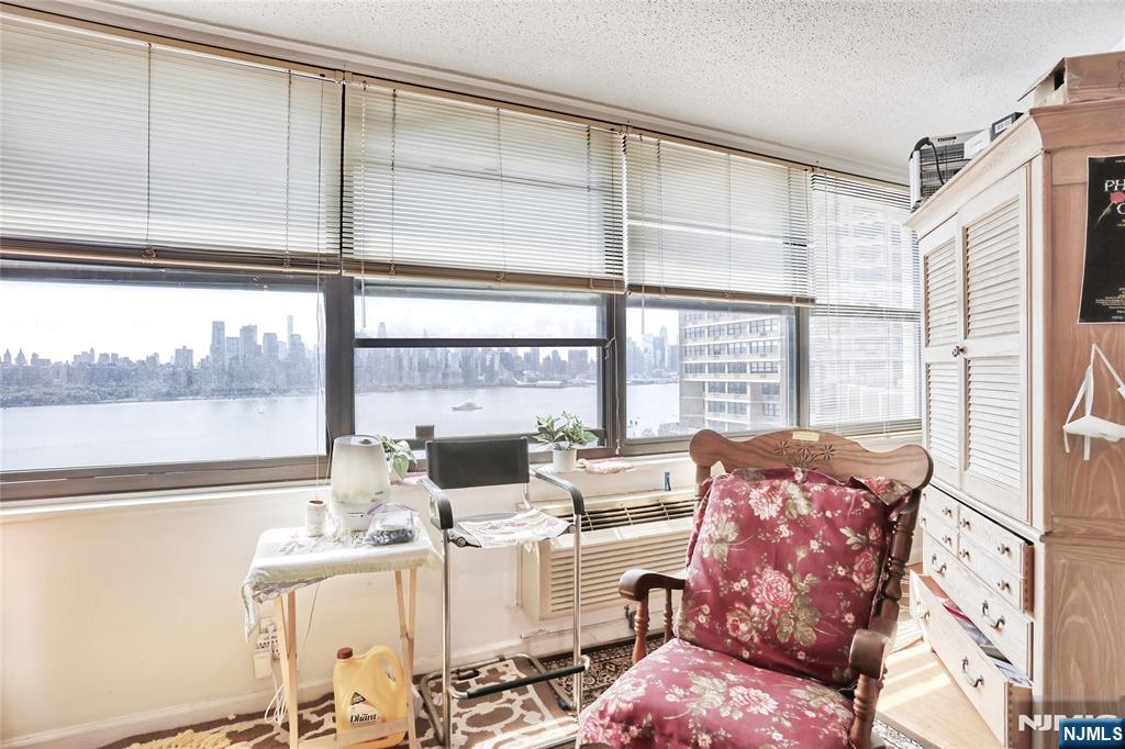 Don’t Miss this Opportunity for a Spectacular View and Location in Tower 3! Experience stunning River and Manhattan skyline views from this beautifully updated one-bedroom condominium at the renowned Galaxy Towers. This home welcomes you with a foyer and powder room leading to a bright living/dining area, accented by track lighting and custom built-in shelves. The modern open kitchen boasts new stainless steel appliances and granite countertops. The oversized bedroom includes a private en-suite bath, large closet, and sun-filled solarium. Hardwood floors throughout add warmth and style. Enjoy full-service, resort-style living with a 24-hour attended lobby, state-of-the-art fitness center, and full spa with sauna, steam, and meeting rooms. Amenities include indoor/outdoor pools, tennis & pickleball courts, on-site shops, grocery store, restaurant, pharmacy, and dry cleanersâ€â€plus the spectacular rooftop garden mini-park. Indoor parking available (fee). Pets welcome! Just steps away is James J. Braddock Hudson County Park, a 167-acre urban oasis with lakes, walking trails, sports facilities, and breathtaking NYC skyline views. Learn more about Galaxy Towers living https://www.thegalaxytowers.com/lifeatthegalaxy Maintenance includes all utilities except cable/internet. Excellent location with easy access to shopping, public transit, NY Waterway Ferry, and Light Rail.