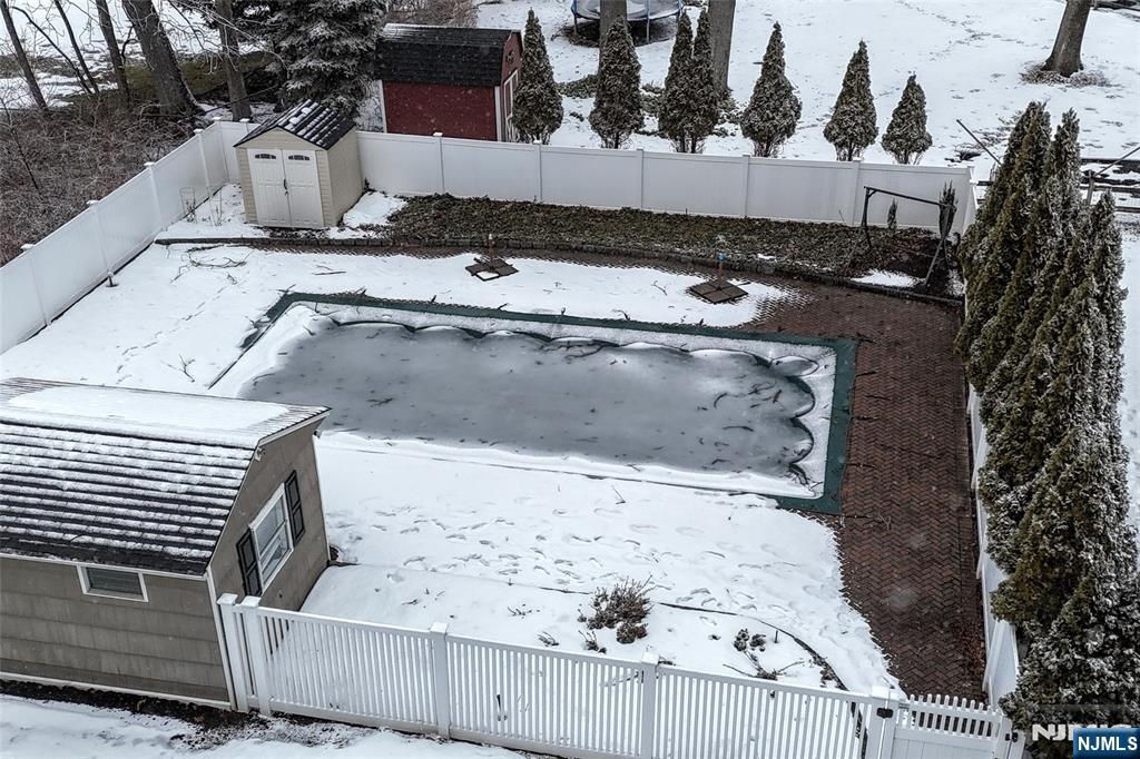 Welcome to this beautiful 5 bedroom, 3.5 bath home in the Sicomac Section of Wyckoff. This home is meticulously maintained and nicely updated! Bright, light, roomy and gleaming floors make this a warm and inviting place to live. Walk right in and see the great floor plan that leads from one room to the next - Living Room, Dining Room, Eat In Kitchen with beautiful cabinets and stainless steel appliances, Family Room with beautiful built-ins, gas fireplace and built-in bar, and finished off with a powder room. Just a few steps up lead to 2 large bedrooms, a hallway bath and a junior suite. On the second floor, the area could be one great primary suite with an office and a big room for a closet plus the primary bath or you could use this as 2 bedrooms with a large bath. The basement is bright and finished for recreation. Plus there is storage and a Cedar Closet. The backyard has a pretty patio that overlooks the backyard and the pool and cabana. 339 Kay Lane is a parklike property and the only house on the street!!! You won't want to miss this pretty home!