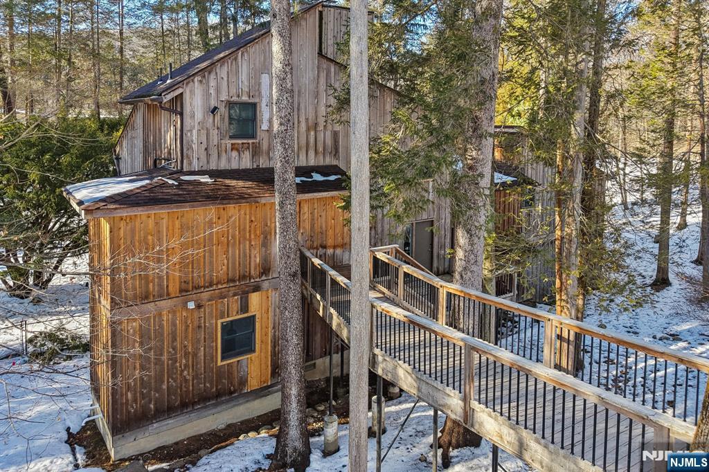 Set on nearly 2 secluded acres framed by mature pines, this reimagined contemporary evokes the charm of a Vermont ski retreat, right here in Mahwah. Offering 4 bedrooms and 3 full baths, it pairs warm architectural character with thoughtful, high-end updates and effortless indoor-outdoor living. At the center, an Inserra-designed kitchen impresses with custom cabinetry, quartzite counters, an oversized entertainer’s island, induction 5-burner cooktop, and stainless suite including double oven with warming drawer, dishwasher, and oversized side-by-side refrigerator. A disappearing beverage station with wet sink and beverage fridge, walk-in pantry, and sliders to the deck complete the space. Gather in multiple living areas anchored by three wood-burning fireplaces, or head to the walkout lower level featuring radiant-heated floors, a family/rec room with wet bar and quartzite top, Frigidaire Professional refrigerator & freezer, plus a bedroom, full bath with steam shower, and flexible guest/office space. Outdoors, enjoy a bluestone terrace with hot tub, outdoor kitchen with pizza oven and propane grill, exposed-aggregate patio with bluestone edging, raised garden beds, hammock hookups, and a koi/goldfish pond; an inviting, year-round sanctuary. Notable improvements include septic (2019), roof (2020), Andersen windows and driveway (2024), Navien heat (2025), and a whole-house generator. Turnkey, private, and designed for elevated living.