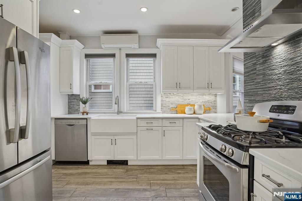 Investor or owner occupant opportunity. This well maintained 2 family home offers classic character with thoughtful updates and beautiful front porch. Located on Ridge Road, this property is close to downtown Rutherford’s shops, restaurants, and transportation. Each unit features 3 bedrooms and 1 full bath,ideal for rental income or multi generational living.The second floor includes an ornamental fireplace.Both apartments offer separate utilities and private front and rear entrances, plus separate laundry. Large unfinished basement and attic provide potential to create additional living space and maximize value.1st floor has split system a/c, while the 2nd floor uses window units. The home is fully gas with vinyl siding, a long driveway for off street parking, and a sprinkler system in the front and rear yards. The second floor tenant is month to month and willing to sign a long term lease, or the home can be delivered vacant. Rare opportunity to find a multi of this size, location & long term potential.