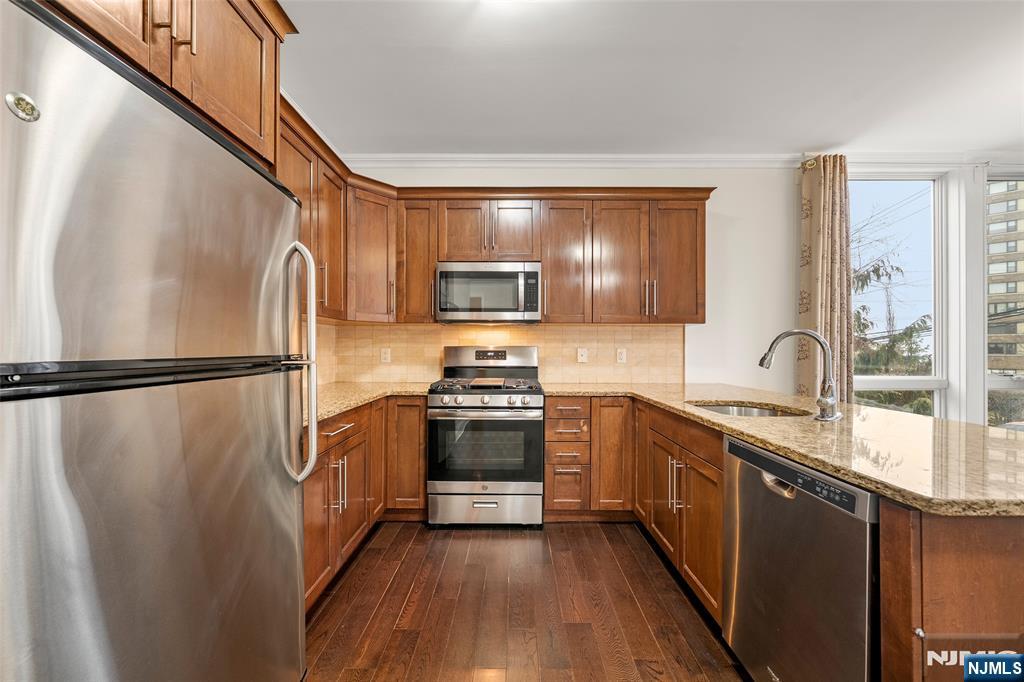 I am excited to share a new listing for a truly exceptional corner unit in highly desirable Cliffside Park. Built in 2009, this rarely available two-bedroom, two-bathroom condo offers 1,264 sq. ft. of thoughtfully designed living space. As an east-facing corner unit, the home is bathed in natural light from oversized, floor-to-ceiling windows. Key features of this residence include: - Chef’s Kitchen: Sleek granite countertops, stainless steel appliances, and a convenient overhang island. - Open Layout: A wide foyer leads into spacious dining and living areas, perfect for entertaining. - Primary Suite: A peaceful retreat featuring two closets (including a walk-in) and an ensuite bathroom with a soaking tub. - Split Floor Plan: The second bedroom is located on the opposite side of the unit for added privacy. - Modern Amenities: In-unit washer/dryer, hardwood floors throughout, central A/C, and two garage parking spaces. The location offers effortless commuting with express bus service to NYC just steps away. With local schools, shopping, and dining nearby, this home provides a rare combination of sophistication and comfort.