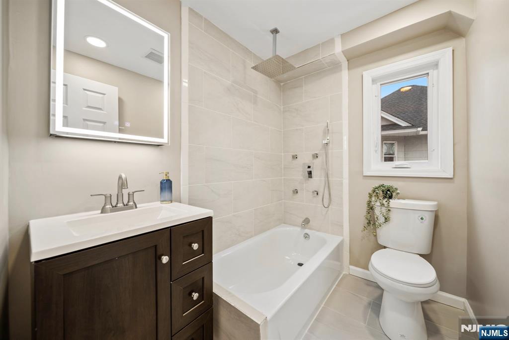 Perfectly located just a short stroll from vibrant downtown Westwood, known as the 'Hub of the Pascack Valley'. Enjoy top-rated schools, charming shops and restaurants, and convenient NYC transportation by train or bus. This warm, NEWLY RENOVATED Colonial offers 3 bedrooms and 3 full baths across more than 2,200 sq ft of beautifully designed living space. A welcoming porch sets the tone for bright interiors, gracious proportions, and an open floor plan ideal for everyday living and entertaining. Gleaming hardwood floors throughout and recessed lighting enhance the home’s timeless appeal. The main level features a spacious living room, entertaining dining room, and a stunning modern eat-in kitchen with rich wood cabinetry, quartz countertops, tiled backsplash, stainless steel appliances, and a center seating island. The expansive family room boasts vaulted ceilings, skylights, abundant natural light, and a wood-burning fireplace. Sliding doors open to a large deck and fenced backyard. A full bath and laundry complete this level. Upstairs features three bedrooms and a renovated full bath. The third floor offers a flexible bonus space with an additional full bathâ€â€ideal for office, recreation, or guests. The lower level provides storage, utilities, and access to the attached two-car garage. A deep fenced yard, brick-and-shake exterior, new roof and skylights, and an expansive driveway complete this exceptional offering in one of Bergen County’s most desirable communities.