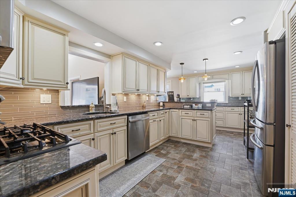 Bright, spacious and thoughtfully updated in Waldwick NJ! This warm, inviting 4BR home offers all the amenities and nearby NYC commuting options you're looking for! Inside you'll find an updated kitchen with granite countertops, light cream cabinetry, breakfast bar and plenty of storage. From the kitchen, enter into the large family room filled with natural light and a warm fireplace, creating a truly inviting space for everyday living, movie nights or hosting guests in comfort. A formal living room and dining room provide additional space for family gatherings or game nights. Upstairs you'll find four bedrooms, including a spacious primary bedroom, two additional well-sized bedrooms and a versatile fourth bedroom currently configured as a home office. A full bathroom serves the top floor, while a convenient powder room is located on the main level. Step outside to enjoy a vinyl fenced-in backyard with paver patio...perfect for grilling, outdoor dining or relaxing. Garden enthusiasts will appreciate the two dedicated garden beds along the side yard. An attached garage and driveway accommodating up to four cars provides plenty of parking. Located in the desirable Bergen County town of Waldwick NJ, you'll have Waldwick's NJ Transit train station nearby, NYC bus access along Route 17, local parks and nearby shopping, dining and restaurants. Book your showing today and see why this home is so special!