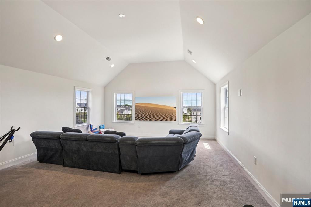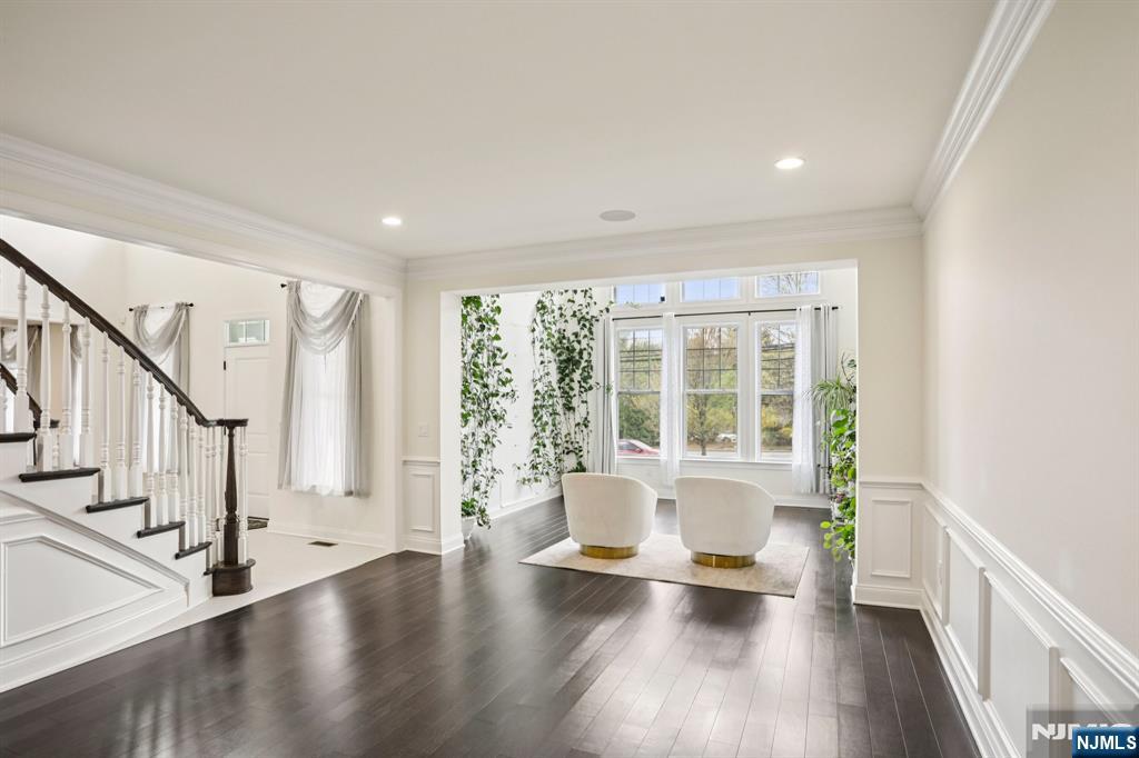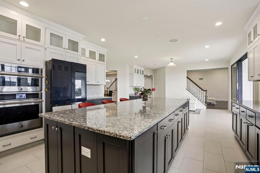 Welcome to this stunning 2023 new construction in desirable Mahwah, built by renowned Toll Brothers. This exceptional 5-bedroom, 5.5-bathroom residence offers refined elegance, modern comfort, and exquisite craftsmanship throughout. A grand two-story entry foyer with a dramatic double staircase creates an unforgettable first impression. The main level features a formal living room and a grand family room with a fireplace, perfect for both everyday living and entertaining. A private den/office adds flexible space. The chef’s kitchen is the heart of the home, showcasing an oversized center island and seamless flow into the spacious dining area, ideal for gatherings. A first-floor bedroom with a full bath provides excellent guest or extended living accommodations. Upstairs, the spectacular primary suite offers a luxurious retreat with a generous walk-in closet and a spa-inspired bath complete with a soaking tub. Three additional bedrooms are beautifully appointed junior suites, and a large second-floor family room provides versatile additional living space. The fully finished walk-out basement is designed for entertaining, featuring a bar area, a full bath, and direct access to the backyard patio. Additional highlights include extensive custom moldings throughout, solar panels for energy efficiency, electric vehicle charging capability, and a three-car garage. A great opportunity to own a nearly new luxury home in one of Bergen County’s most sought-after communities.