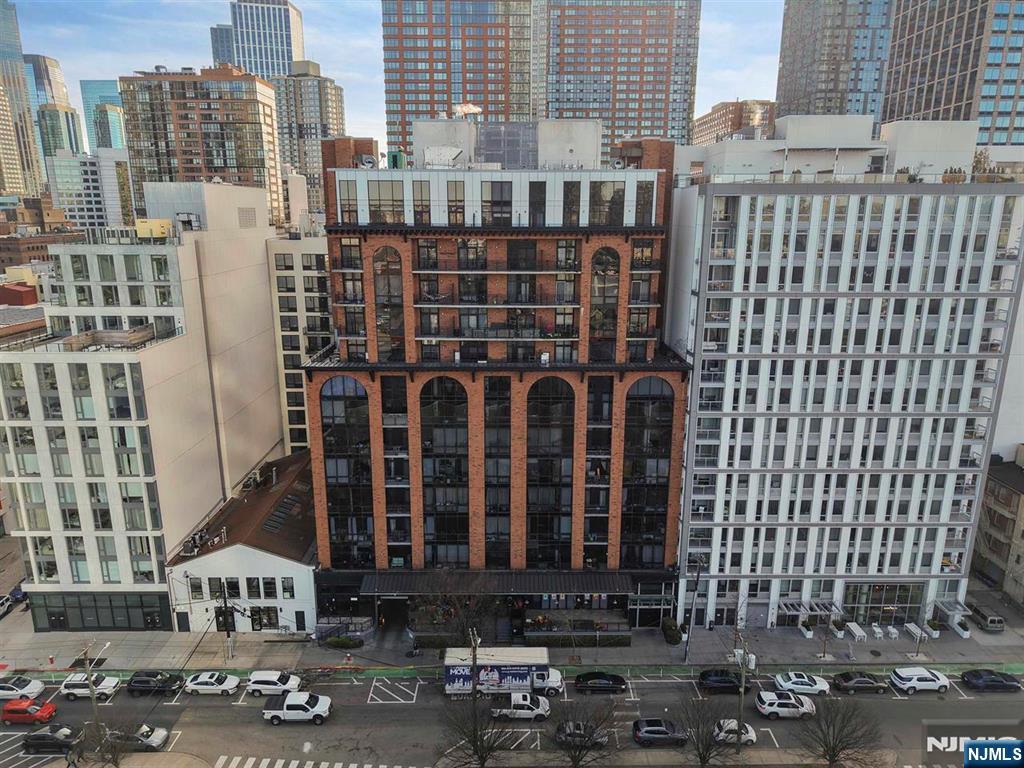 Welcome to Waldo Lofts, an award-winning boutique condominium in the coveted Powerhouse Arts District of Downtown Jersey City. This stylish 1-bedroom, 1-bath home offers approximately 829 sq ft of thoughtfully designed living space, blending modern finishes with a smart, open layout. Highlights include hardwood floors, soaring 10-foot ceilings, central A/C, recessed lighting, and an in-unit washer/dryer. The open living and dining area is framed by dramatic floor-to-ceiling windows, filling the home with natural light. The contemporary kitchen features stainless steel LG appliances, full-height maple cabinetry, granite countertops, mosaic tile backsplash, pendant lighting, and a breakfast bar ideal for entertaining. The spacious bedroom includes a walk-in closet for excellent storage. Residents enjoy premium amenities such as a fitness center, package room, bike storage, and secure key-fob access. The professionally managed building offers an on-site superintendent five days a week and cleaning services six days a week. Recent upgrades include a renovated lobby and advanced video intercom system. Monthly HOA fees cover hot water, gas, and Verizon Fios. Just moments from the Grove Street PATH, this home provides quick access to NYC and places you steps from Downtown Jersey City’s vibrant dining, shopping, and cultural scene. Parking available nearby for an additional fee.