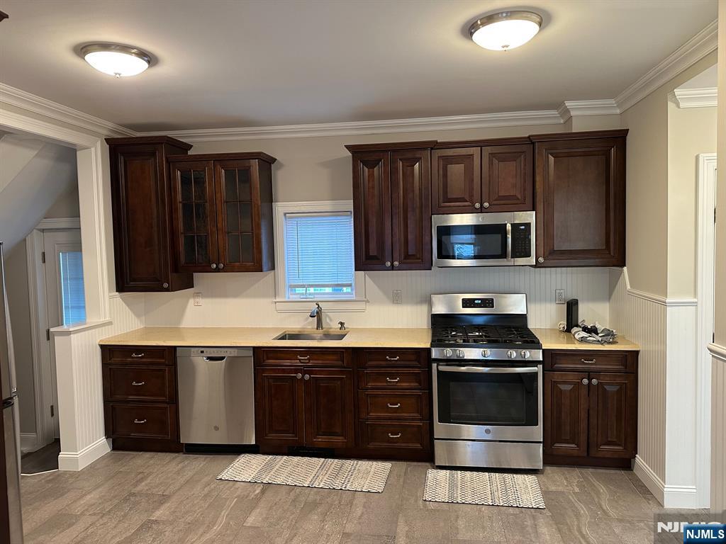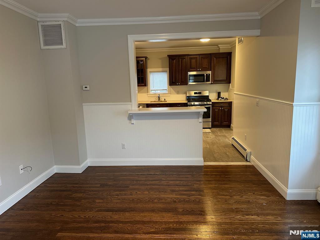 Recently renovated first floor 2-bedroom 1 bath apartment in a 2-family home in the heart of downtown Oradell. Private back and side entrances. Entire apartment freshly painted. Spacious living/dining room with open view to custom kitchen with stainless-steel appliances including microwave, gas oven range, refrigerator, and dishwasher. Washer and dryer in the clean, dry, and roomy basement space. Central air conditioning and plenty of closet space. Hardwood flooring throughout. Two parking spaces in the back of the home. Short walk to shops and restaurants. Walking distance to train and bus with easy access to NYC. No pets and no smoking in the apartment. Tenant pays all utilities.