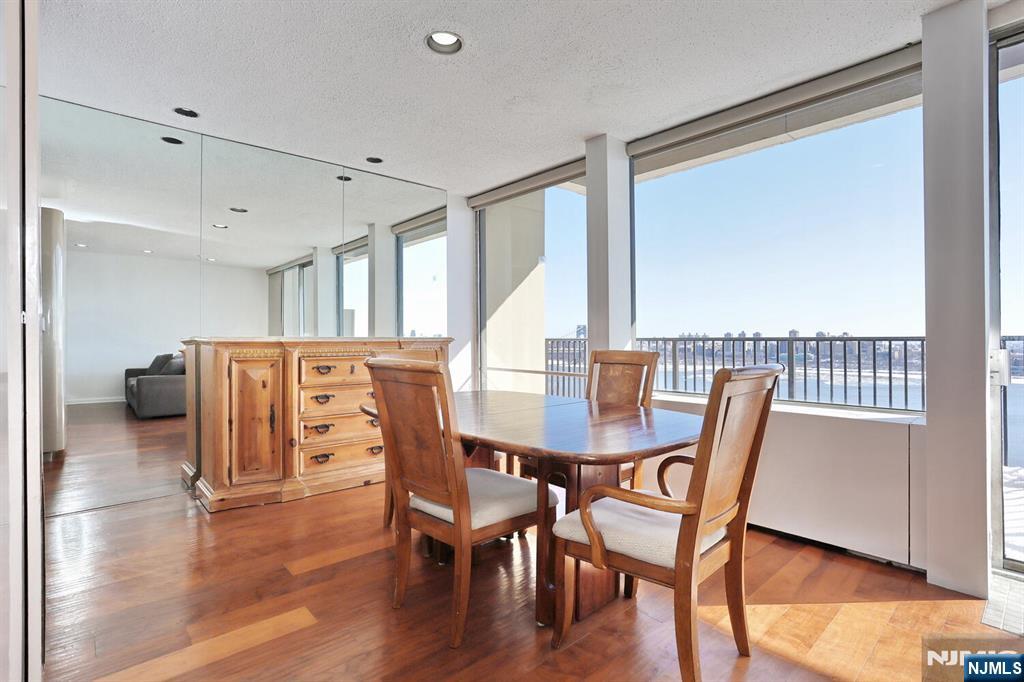 Welcome to this exceptional two bedroom, two bath corner co-op located on the highest floor below the penthouse, offering sweeping panoramic views of the iconic George Washington Bridge and the Manhattan skyline. Enter through the first floor foyer, complete with a convenient coat closet, and step into a sun drenched living and dining area framed by dramatic floor-to-ceiling windows showcasing breathtaking river and city views. The expansive 24 foot terrace extends your living space outdoors, perfect evening sunsets, and entertaining against a stunning backdrop. The main level also features a well appointed kitchen and dedicated dining area, thoughtfully positioned for both everyday living and hosting. Just a few steps up, you’ll find two generously sized bedrooms, including a spacious primary suite with a walk-in closet and private full bath. A second full bath in the hallway and multiple storage closets provide comfort and convenience throughout. This rare corner unit combines space, light, and unparalleled views in one remarkable home.