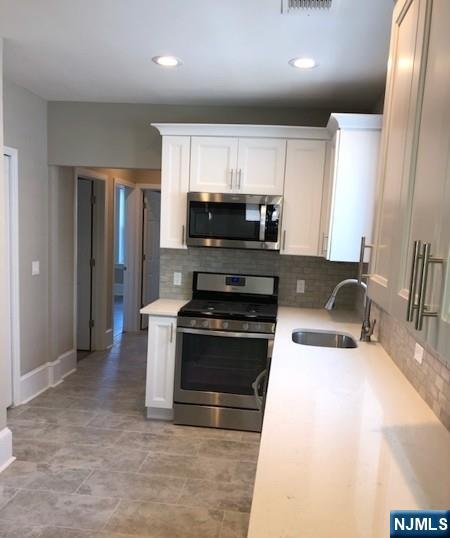 1st Flr Apartment w/2 Floors of Living Space in a Legal 2 Fam Home Freshly Painted Features Custom Trim, Newer Flooring, 9 ft Ceilings, Newer Windows, Newer Doors, Gorgeous Newer Kitchen w/Quartz Counter tops, Tile Backsplash, Newer Stainless Steel Appliances & Newer White Cabinetry, Living Room, Dining Room, Newer Bathroom, 3 Bedrooms on 1st Floor and 4th Bedroom Located on Ground Level w/Full Bathroom w/Separate Entrance, Central Air, Recessed Lighting and is Conveniently Located Close to Schools, Major Highways, Shopping, Dining and NJ/NYC Transportation.