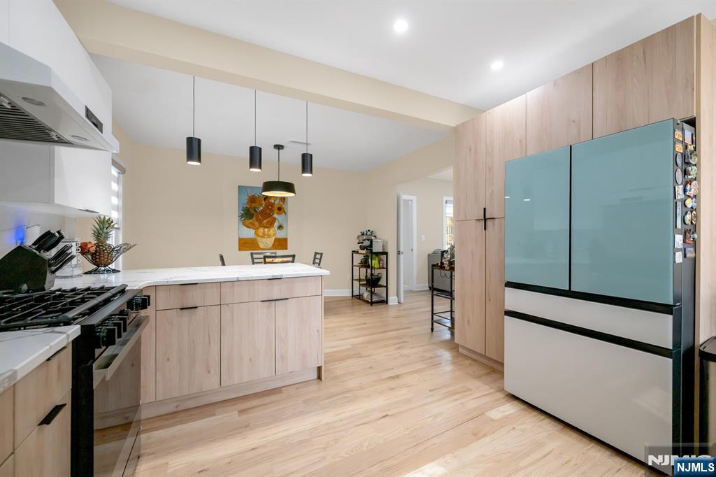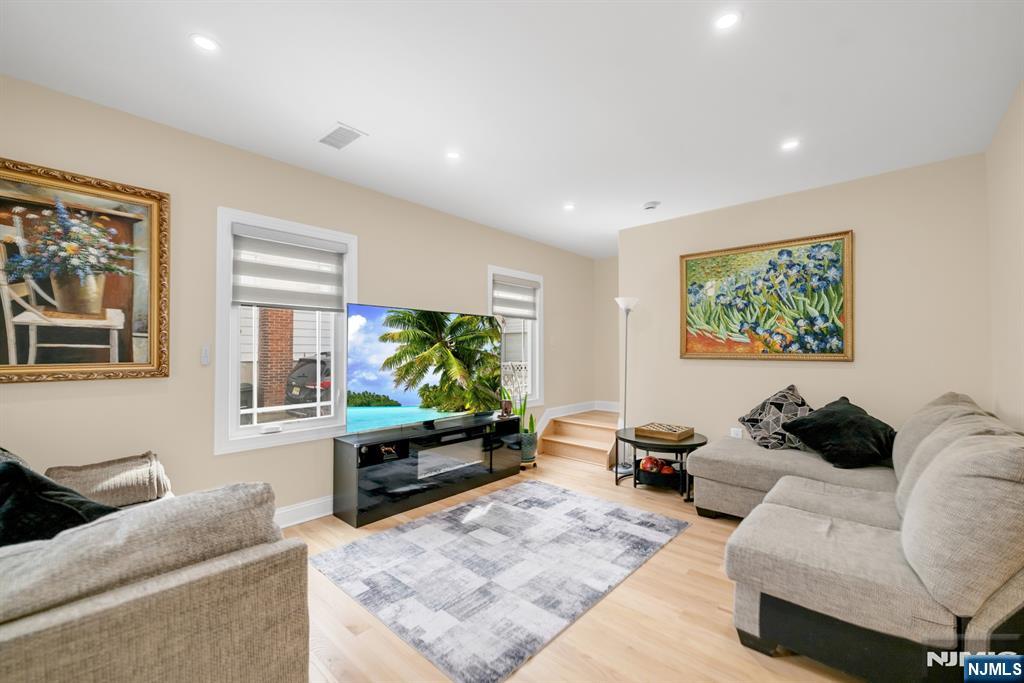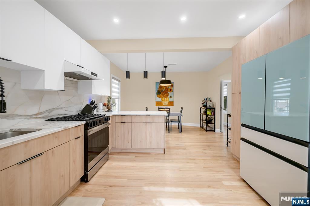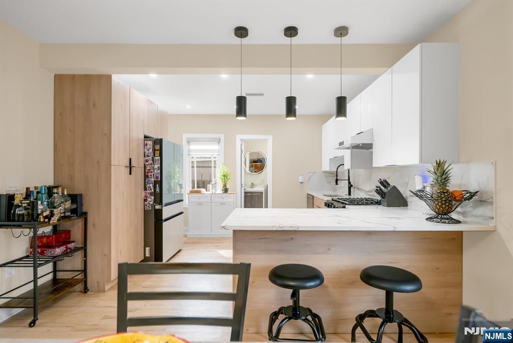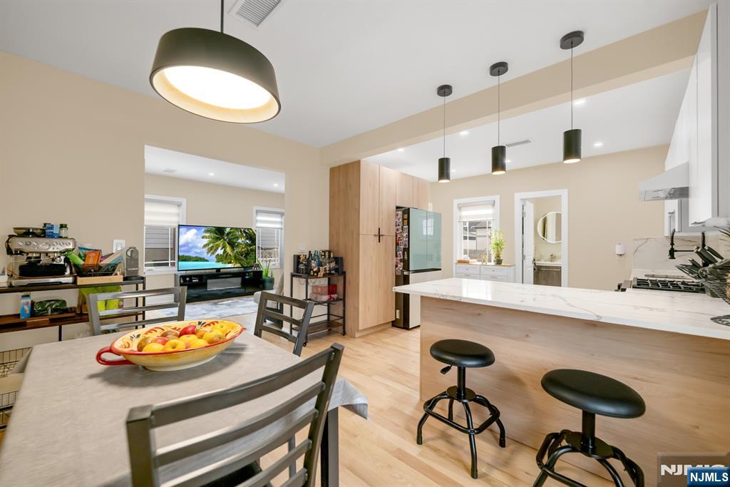 Beautifully renovated and modern Colonial in the heart of Rochelle Park offering 2 bedrooms and 1.5 bathrooms. The main level features a bright open-concept layout with a stylish, newly renovated kitchen showcasing two-tone European-style cabinetry, stainless steel appliances, and a breakfast bar with sleek quartz countertops. The kitchen flows seamlessly into the living and dining areas, creating an ideal space for both everyday living and entertaining. A dedicated home office and a renovated powder room complete the first floor. Upstairs you will find two generously sized bedrooms and a fully renovated full bathroom. Additional features include an unfinished basement offering great storage or future potential, a long driveway, and a nice flat backyard. Low taxes and a prime Bergen County location with easy access to shopping, restaurants, and major highways make this home an excellent choice.
