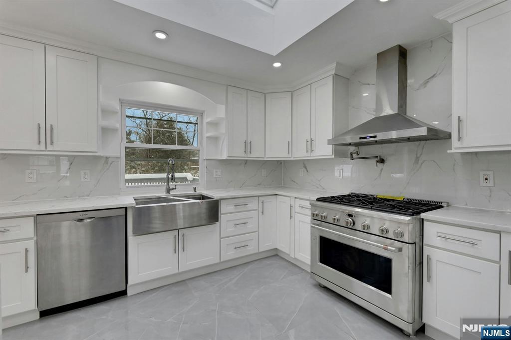 A wonderful opportunity awaits in this beautifully renovated bi-level home set on a park-like property in a desirable section of Wayne.The main level offers a bright and inviting living room, a formal dining room with access to a large deck overlooking the backyard, and a newly renovated eat-in kitchen featuring a custom gas stove and stainless steel appliances. The primary bedroom includes a private bath, complemented by two additional bedrooms and hardwood floors throughout.The ground level expands the living space with a spacious recreation room, a fourth bedroom or home office, a powder room, a laundry area, and a utility room. Direct access to the built-in two-car garage and walk-out access to the rear yard add convenience and functionality. The outdoor setting is ideal for entertaining and relaxation, featuring a fenced-in, oversized yard, patio, and in-ground pool. Recently renovated and move-in ready, this four-bedroom, 2.5-bath home is located outside the flood zone and close to shopping, dining, major roadways, town amenities, and Packanack Lake.