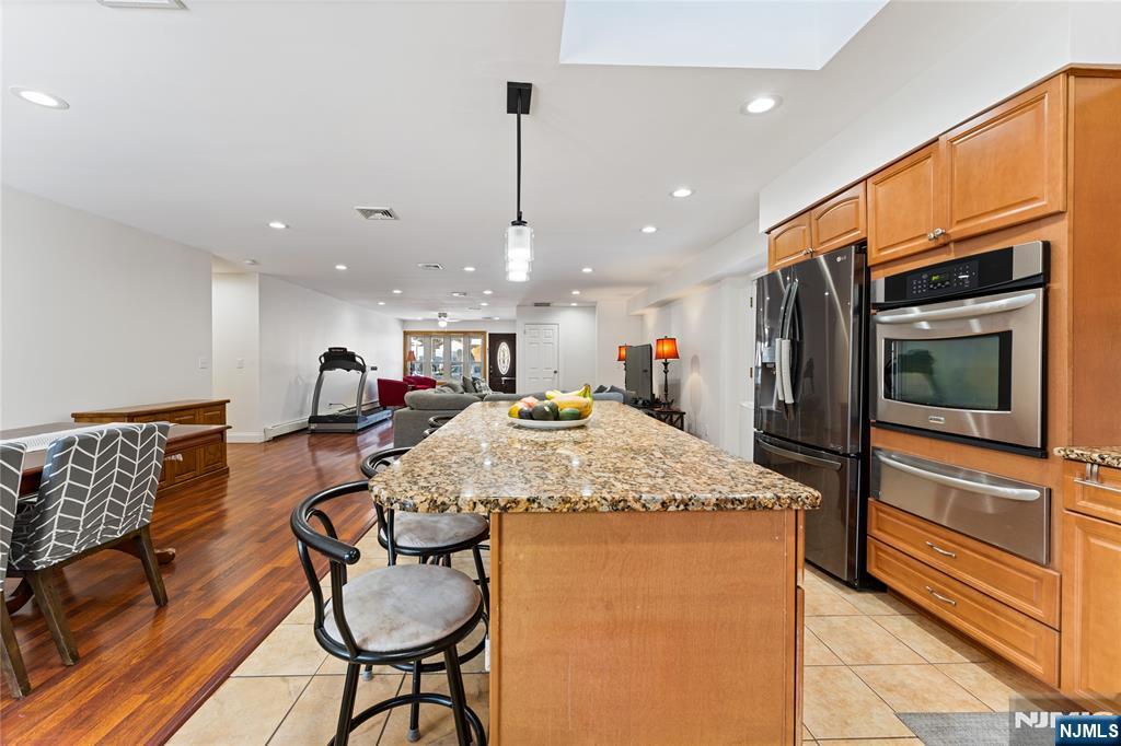 Welcome to this beautifully maintained and spacious ranch in the sought-after Radburn section of Fair Lawn! This inviting home offers a bright, open-concept living and dining area that flows seamlessly into a generous eat-in kitchen featuring stainless steel appliances, granite countertops, and an oversized island perfect for gathering and entertaining. Sliding glass doors lead to a Trex deck ready for spring and summer barbecues, overlooking a large backyard with plenty of room for games, relaxing, and making memories. A storage shed adds extra convenience. The left wing offers two bedrooms and a main bath, along with a spacious primary en-suite complete with a walk-in closet and full bath. The right wing features an additional bedroom with side-door access and entry to the garage. Downstairs, enjoy a beautifully finished basement with a welcoming rec space, separate office, full bathroom, laundry room, pantry, storage, and utility room. Freshly painted and equipped with central air and baseboard heating, this home is move-in ready. Commuters will love the easy access to the Radburn Station approx. 1 mile away and nearby NJ Transit bus service to the Port Authority. Close proximity to major highways. Conveniently located near local shops, larger shopping centers, and the farmers market, with the added bonus of optional Radburn pool/ tennis membership for the summer this is one you won’t want to miss!