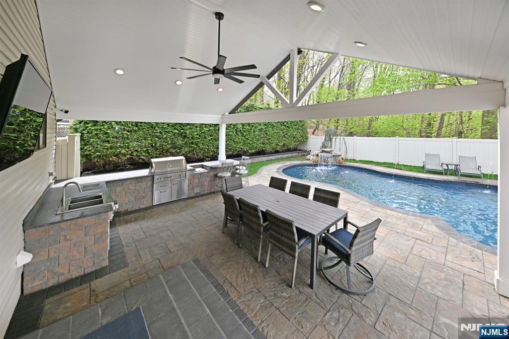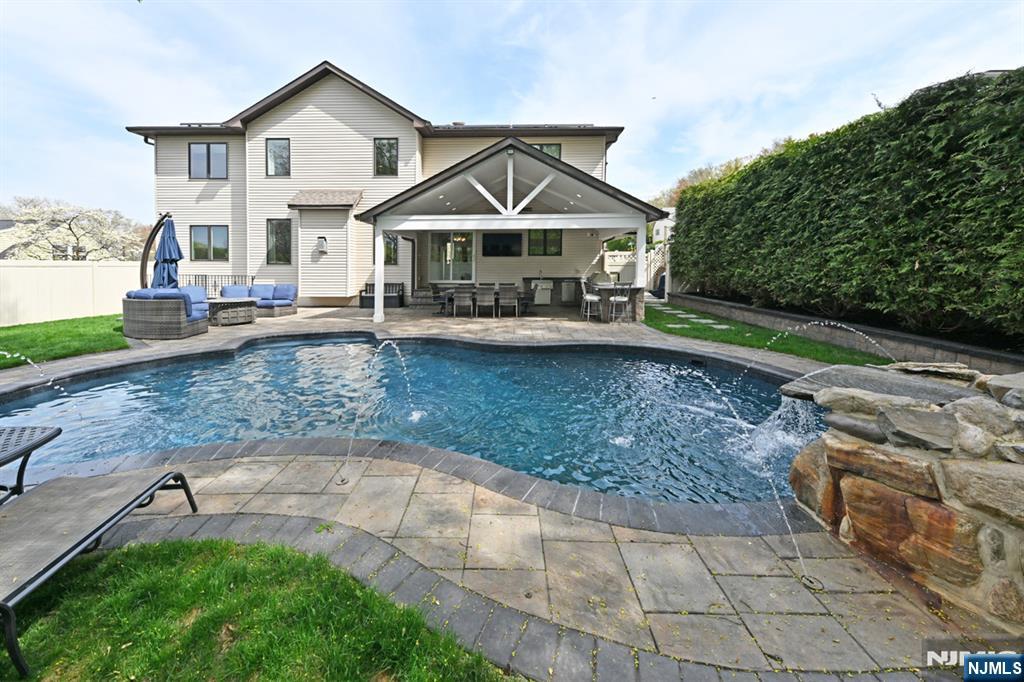 Welcome to this sophisticated, 10-year-young Colonial, where timeless design meets modern luxury in prime Paramus. A grand cast iron door opens to a dramatic 2-story entry foyer. The 1st flr features a formal living room & dining room, a stunning 2-story family room w/ gas fireplace. A 1st-floor bedroom w full bath offer flexibility for guests or extended living. The stylish, modern kitchen is designed for everyday living & entertaining w/ sliders out to the patio. Upstairs, a thoughtfully designed second level with Jr. suite w/ full bath, two ample bedrooms, a hall bath, and laundry adds convenience. An expansive primary suite has a luxurious bath and two walk-in closets. the landing w/ view to the family room enhances the open, airy feel. A finished walkout basement offers an impressive extension of living space, complete with full-size windows, vinyl plank flooring, and additional full bathâ€â€ideal for recreation, entertaining, or a home office setup. Lots of upgrades, including central vac, 3-zone A/C, sprinkler system, and 2-car garage. Outside, enjoy a beautifully landscaped yard with a paver driveway and dual EV charging stations. Your private backyard oasis awaits, w/ a saltwater pool, serene zen fountain, an outdoor kitchen w/ seating, and a covered patioâ€â€perfect for relaxing or hosting unforgettable gatherings. All of this a stone’s throw from a Blue Ribbon Award-winning elementary school, makes this exceptional home a rare opportunity you won’t want to miss.