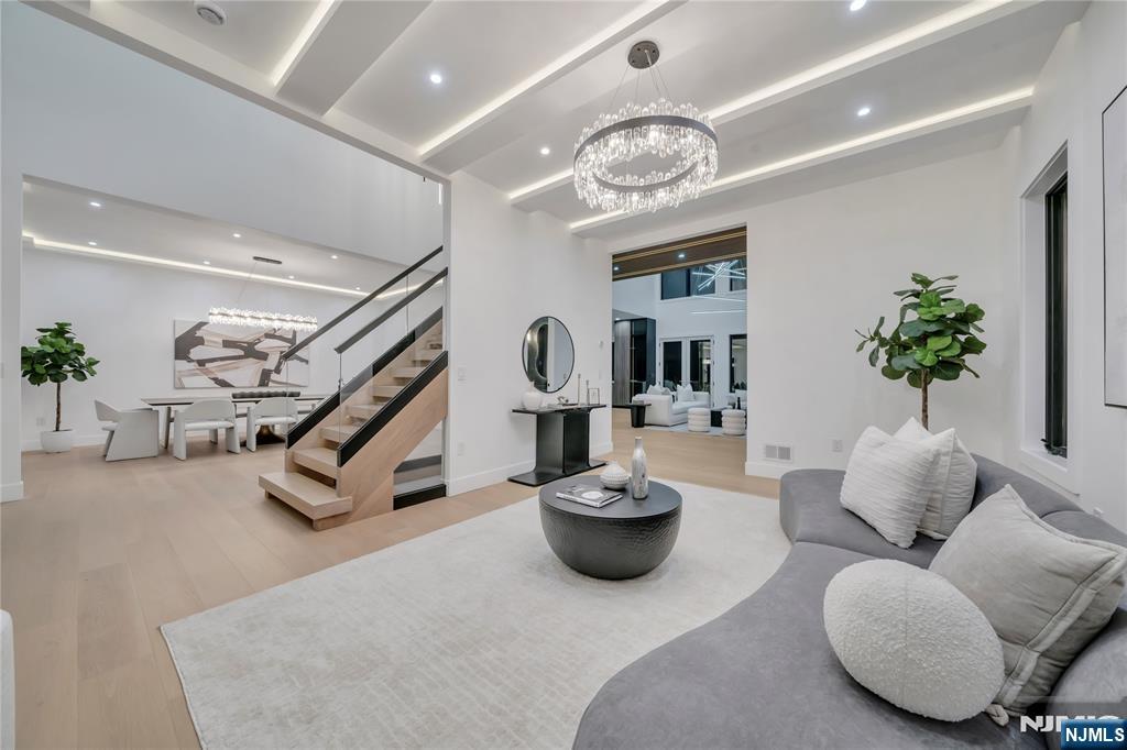 Discover this modern masterpiece in Paramus, NJ. An unparalleled blend of contemporary luxury and California-inspired elegance crafted for today’s discerning buyers.Designed by a premier local builder, this brand new residence showcases a dramatic 20’ entry foyer and great rm with floor-to-ceiling windows, a striking fireplace wall, and expansive natural light for seamless indoor-outdoor living.Just 20miles from NYC, this stunning home offers 6Bed/7 baths, and soaring architecture perfect for both commuters and luxury enthusiasts.The chef’s kitchen features sleek two-tone cabinetry, quartz counters and backsplash, hidden pantry,premium appliances,and a waterfall island.Enjoy the floating glass-and-iron staircase with LED highlights, sophisticated lighting fixtures,glass garage doors,and manicured landscaping. The spa-like primary suite boasts a rainfall shower,soaking tub,and custom walk-in closet.Each junior suite includes a private bath and walk-in closet,with laundry on the second floor for convenience.Designer finishes throughout reflect a commitment to quality and modern style.The open-concept layout connects the great room, formal dining, rec room, butler’s pantry, movie theater, gym, sauna, wet bar, and lower-level private suite.Double French doors open to a lush backyard, ideal for gatherings.Located in one of Bergen County’s most sought-after towns renowned for top schools, shopping, parks, and easy access to NYC.Don’t miss your chance, schedule a private