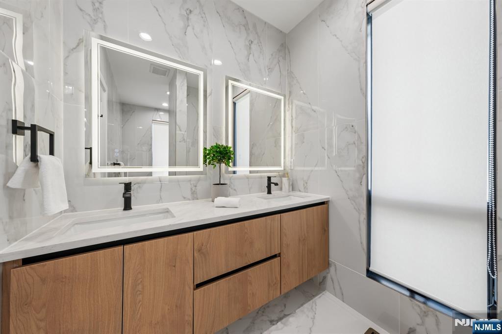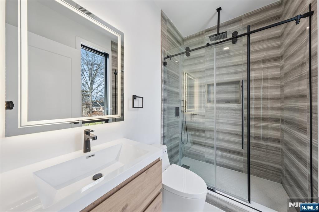 Welcome to 43 Grove Street  a BRAND-NEW MODERN home in the heart of Tenafly! Step inside to an open, sun-filled main floor with oversized black-framed windows and wide-plank hardwood floors. The living room centers around a sleek linear fireplace and flows easily into the dining area, kitchen, family room, and a convenient powder room. The kitchen features custom wood cabinets, white quartz counters, a herringbone backsplash, and a large waterfall island  perfect for cooking or casual seating. Upstairs, the primary suite feels like a spa with floor-to-ceiling marble, a glass shower, and a soaking tub. You’ll also find two more bedrooms, each with its own full bathroom, for a total of three en-suites on this level. The finished lower level adds even more living space, complete with a bedroom with its own bathroom, a summer kitchen, and a side entrance  ideal for guests or extended family. Enjoy outdoor living on the rear deck or roof deck, both perfect for relaxing or entertaining. The home also includes a generator, French drain system, and 600-gallon underground stormwater catch basins for added peace of mind. All this and just a short walk to Tenafly’s top-rated schools, shops, and restaurants.