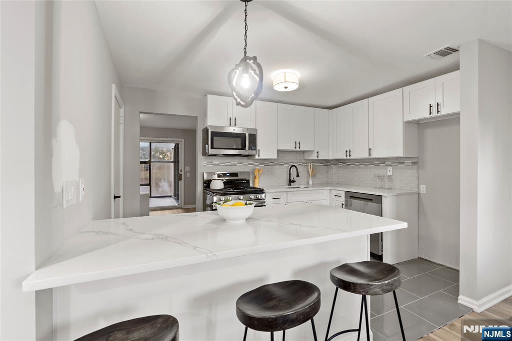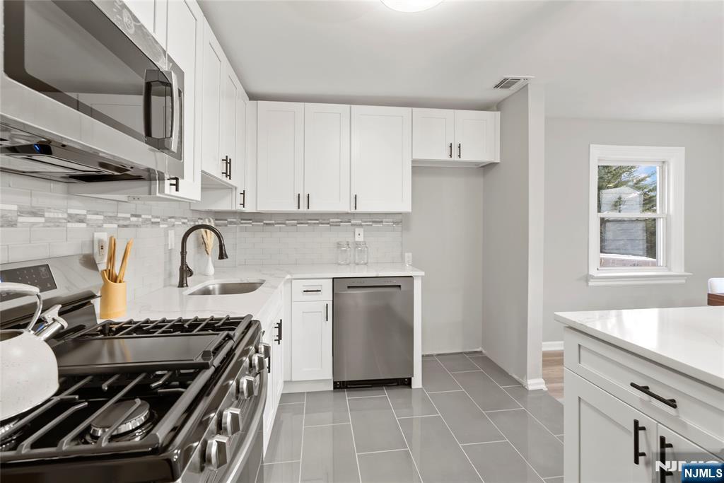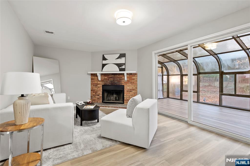 eautifully updated and move-in ready, this inviting Wayne home offers the perfect blend of style, comfort, and functionality just a few blocks from Packanack Lake and its sought-after amenities. A bright open layout, recessed lighting, and tasteful modern finishes create a warm and welcoming atmosphere throughout. The living room, centered around a striking fireplace, flows seamlessly into the dining area and renovated kitchen featuring white shaker cabinetry, stone countertops, stainless steel appliances, subway tile backsplash, and generous prep space, making it ideal for both everyday living and entertaining. A separate family room provides additional flexible living space, perfect for relaxing, gathering, or working from home. The spacious primary bedroom retreat features a vaulted ceiling, skylight, large mirrored closets, and sliding glass doors leading to a private balcony overlooking the backyard. An enclosed sunroom offers the perfect all-season space to unwind or entertain while enjoying views of the deep, tree-lined property. The lower level adds even more versatility for recreation, storage, or a home gym. Conveniently located near shopping, dining, parks, and major commuting routes, this home is a wonderful opportunity in one of Wayne's most desirable settings