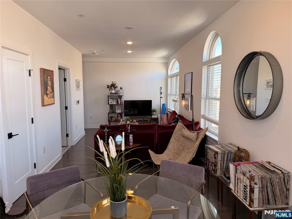 Perched on the top floor in the vibrant Jersey City Heights neighborhood, this sun-drenched duplex residence offers a perfect blend of space, light, and modern comfort. Oversized windows fill the home with natural light, creating an inviting and airy atmosphere throughout. The main level features an elegant open-concept living and dining area seamlessly connected to a stylish kitchen with a sleek quartz breakfast bar, ideal for entertaining or casual dining. Rich hardwood floors flow throughout the home, complemented by central HVAC with a Nest thermostat for effortless climate control. A full bathroom completes this level. The lower level offers two spacious bedrooms, a second full bathroom, and a convenient laundry and storage area, providing both comfort and practicality. Located just steps from Central Avenue and Journal Square, residents enjoy easy access to a dynamic mix of boutique shops, caf s, restaurants, and convenient transportation options to Manhattan. The building enhances the lifestyle experience with premium amenities, including a fully equipped fitness center and an impressive rooftop terrace showcasing breathtaking panoramic views of the New York City skyline. A rare opportunity to enjoy penthouse-style living, exceptional light, and an unbeatable Jersey City location. PROFESSIONAL PICTURES will be up next week. Agent Remarks: Easy showing use ShowingTime