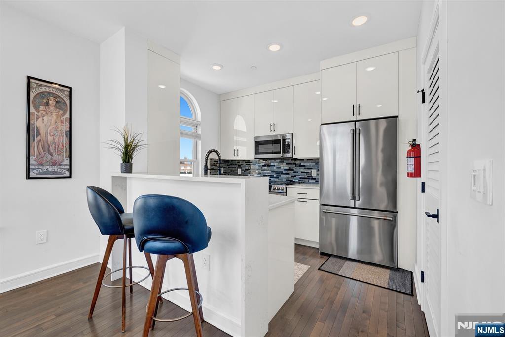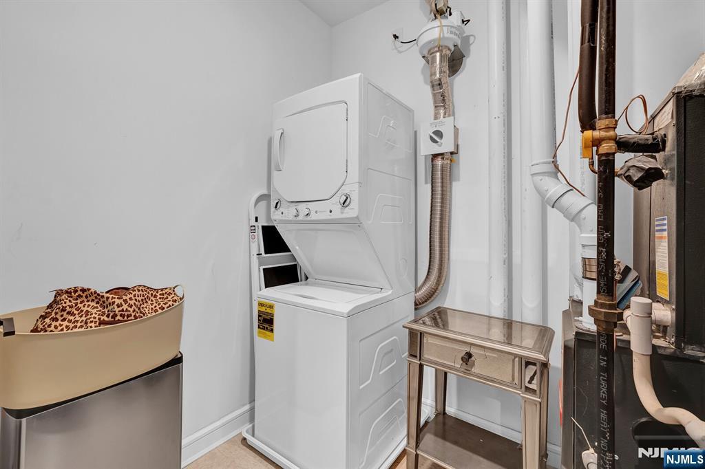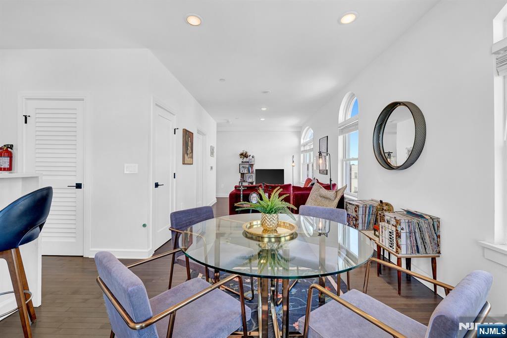 Modern duplex unit with parking and skyline rooftop in the vibrant section of The Heights in Jersey City, this sun-drenched duplex residence offers a perfect blend of space, light, and modern comfort. Oversized windows fill the home with natural light, creating an inviting and airy atmosphere throughout. The main level features an elegant open-concept living and dining area seamlessly connected to a stylish kitchen with a sleek quartz breakfast bar, ideal for entertaining or casual dining. Rich hardwood floors flow throughout the home, complemented by central HVAC with a Nest thermostat for effortless climate control. A full bathroom completes this level. The lower level offers two spacious bedrooms, a second full bathroom, and a convenient laundry and storage area, providing both comfort and practicality. Located just steps from Central Avenue and Journal Square, residents enjoy easy access to a dynamic mix of boutique shops, caf s, restaurants, and convenient transportation options to Manhattan. The building enhances the lifestyle experience with premium amenities, including a fully equipped fitness center and an impressive rooftop terrace showcasing breathtaking panoramic views of the New York City skyline.