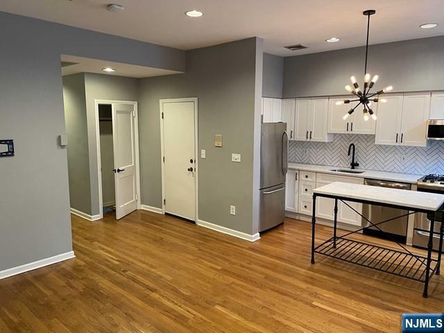 Enjoy living in this downtown apartment in a boutique building of HUDSON STREET in HOBOKEN. This East Facing one bedroom with double closets includes in-unit washer/dryer, an attached private deck for outdoor entertaining, central A/C, intercom, and a spacious storage locker in the basement. The modern kitchen features granite countertops, S/S appliances, and an open concept living room, with hardwood floors and recessed lighting throughout. Dogs extra pay $50 per mo. steps to the River Walk Path, Parks, Shops Restaurants, and Fantastic Convenience to the Path Station, and other NYC transportation.
