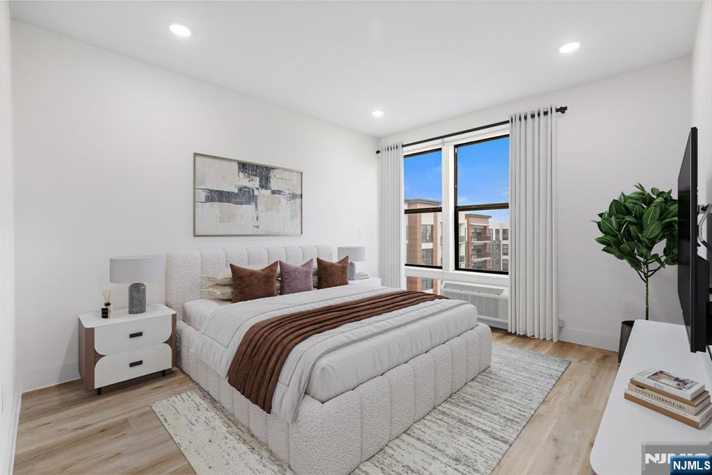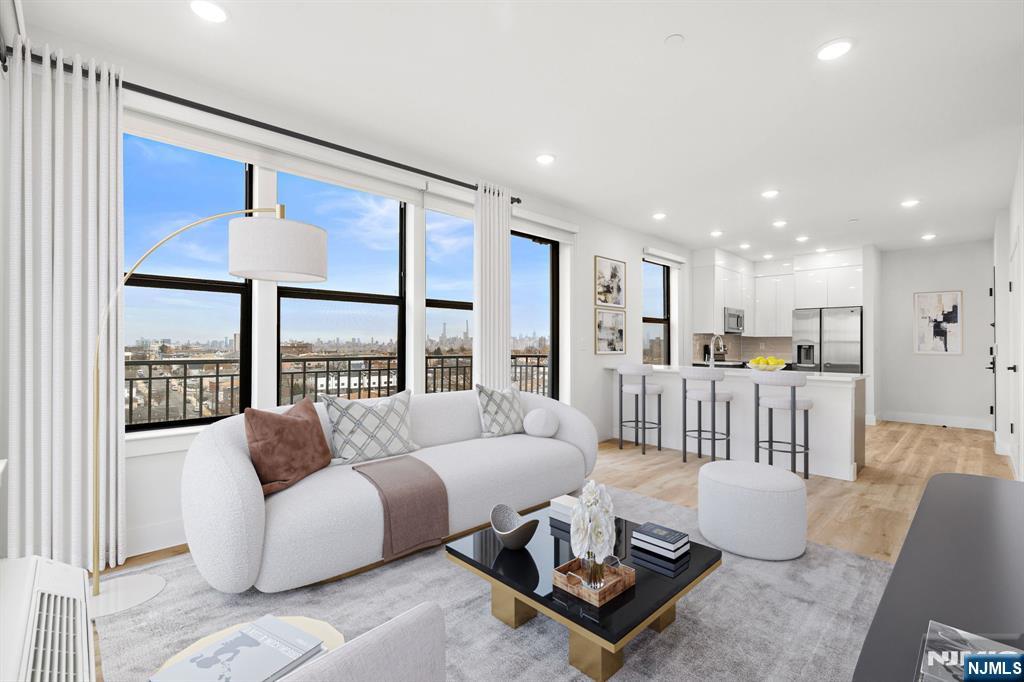 Welcome to The Meadowside – one of the most prestigious condominium residences in Fairview. This amenity-rich luxury building offers modern style living designed for urban professionals, couples, and families alike. This bright 2-bedroom, 2-bath residence features a private balcony with stunning West skyline views and an abundance of natural light. The ultra-modern kitchen is equipped with high-end stainless steel appliances, custom wood cabinetry, quartz countertops, custom window shades, USB-enabled outlets, LED lighting with dimmers, oversized balconies, and walk-in closets. sleek modern details. The home also includes a full-size washer and dryer in unit for added convenience. The Meadowside is an upscale community of 128 luxury residences perched along the western edge of the Palisades, offering breathtaking 360° views of the NYC skyline, the Meadowlands, and surrounding mountains. Amenities include: * Concierge service * Outdoor swimming pool * Fitness center * Co-working lounge * Indoor/outdoor community room * Gas grilling area * Intercom system * 24-hour surveillance * Garage parking available ($150/month) * Private fenced dog park * EV chargers Pet-friendly building (25 lb max). Pet fee: $350 + $50/month. Water included. Tenant pays gas and electric. Easy NYC commute and close to transportation, shopping, and dining. Must see!