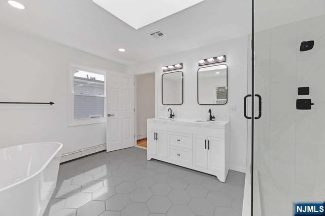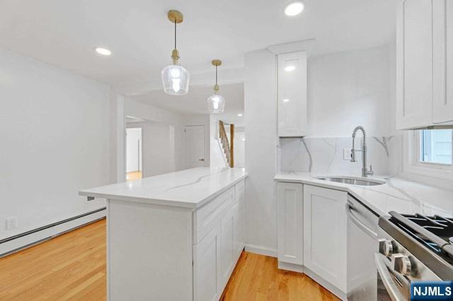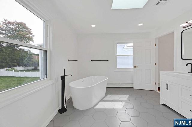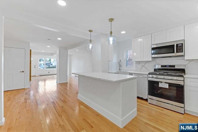 In search of the suburban house, but not ready to give up urban comforts? RIGHT IN THE HEART OF CRESSKILL! Move in ready, recently updated 4 bedroom, 3 bath colonial conveniently located near schools, library, shopping, restaurants, transportation, gym, entertainment, & more! 180' deep lot! Luxurious primary bedroom suite with WIC & oversized bathroom featuring skylight, soaking tub, double vanity & large rainfall shower head. Bright white kitchen with upgraded S/S appliances, brand new soft close cabinets, & quartz countertops. Cozy family room with antique wood burning stove. Loads of recent updates and upgrades include brand white oak hardwood flooring throughout, central A/C system, new windows throughout, 200amp electric panel, & more. Ideal layout for in-law suite. First floor bedroom can be easily used as home office or playroom. Concrete patio in rear with plenty of grassy backyard space & large storage shed. Owner holds RE license.