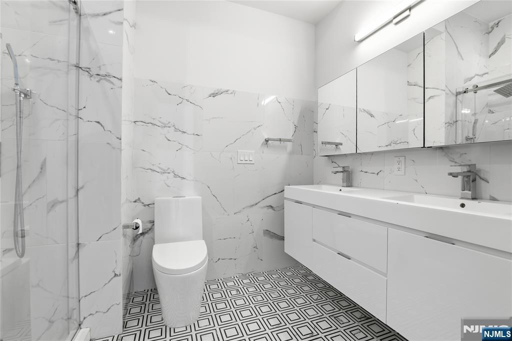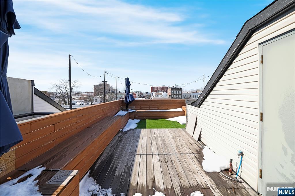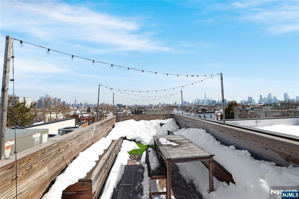 Built in 2020, this beautifully designed condominium at 194 Cambridge Ave #2 offers modern living in the heart of Jersey City Heights. This spacious 3-bedroom, 2-bath home features approximately 1,451 sq ft of open-concept living, highlighted by 10-foot ceilings, wide-plank oak hardwood floors, and oversized casement windows that flood the space with natural light. The thoughtfully designed kitchen serves as the centerpiece of the home, featuring custom Italian cabinetry with sleek handleless channels, quartz countertops, a herringbone marble backsplash, and a large island perfect for entertaining or everyday living. The bathrooms offer a spa-like retreat with double vanities, porcelain tile, rain shower fixtures, and modern dual-flush toilets. Additional features include central air, in-unit laundry, walk-in closets, recessed and track lighting, and a programmable Nest system. Enjoy outdoor living with a private balcony directly off the main living area, along with a separate rooftop terrace showcasing sweeping NYC skyline views, complete with built-in seating and oversized umbrellas for shade. Ideally located near Washington Park, the Central Avenue shopping district, and the Riverview Park Arts District. The home is directly across the street from a bus route offering service to Port Authority in approximately 20 minutes, with additional access to NJ Transit buses and the 9th Street Light Rail for easy connections to Hoboken and Manhattan.