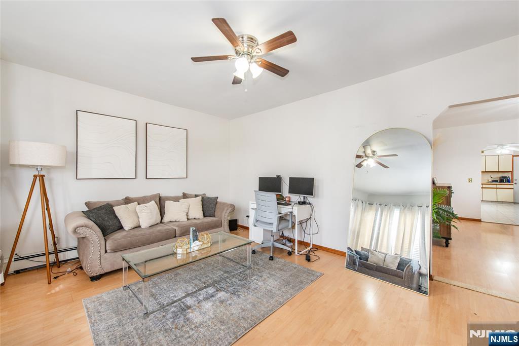 Well-maintained two-family home in Clifton’s desirable Albion section offering space, flexibility, and convenience. Located on a quiet residential street just one block to NYC bus transportation and close to Routes 80, 3, 46, and the Garden State Parkway. Each unit features a spacious, light-filled living room, formal dining room, eat-in kitchen, two bedrooms, and full bath. Large bay windows provide beautiful natural light with views of New York City and nearby Garrett Mountain Reservation, just steps away for hiking, walking trails, and outdoor activities. The fully finished basement offers exceptional bonus space including a family room, additional den/office, summer kitchen with wet bar, full bathroom, and walk-out access to the backyard. Separate laundry areas for each unit with private access. Walk-up attic from main hallway includes two additional rooms shared by both unitsâ€â€ideal for storage or potential future expansion. Exterior features include a long driveway accommodating multiple vehicles, oversized backyard, patio area for entertaining, and detached two-car garage. Ideal for owner-occupant or investment opportunity. Do not miss this versatile property in a prime commuter location.