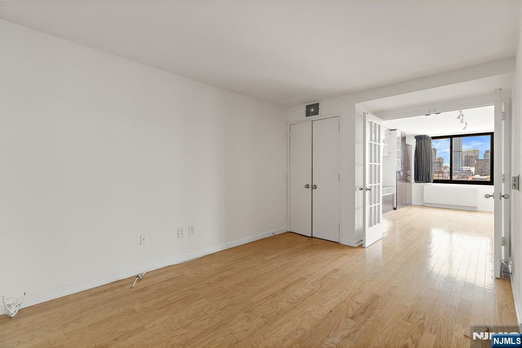 **OH - Sat (3/7) & Sun (3/8) 12PM - 2PM** Beautiful and spacious 1-bedroom plus Den, 2 bath home with a private balcony in luxury community of 700 Grove St. The South-facing exposure and open floor plan provides an abundance of natural light. Chef's kitchen features granite countertops, stainless steel appliances and breakfast bar. Primary bedroom has two walk-in closets and an ensuite bath. The home also includes custom entertainment center, hardwood floors, and in-unit washer/dryer. The exclusive community includes 24/7 doorman, shuttle to the Path, gym, community room, shared courtyard with BBQs, and playroom.
