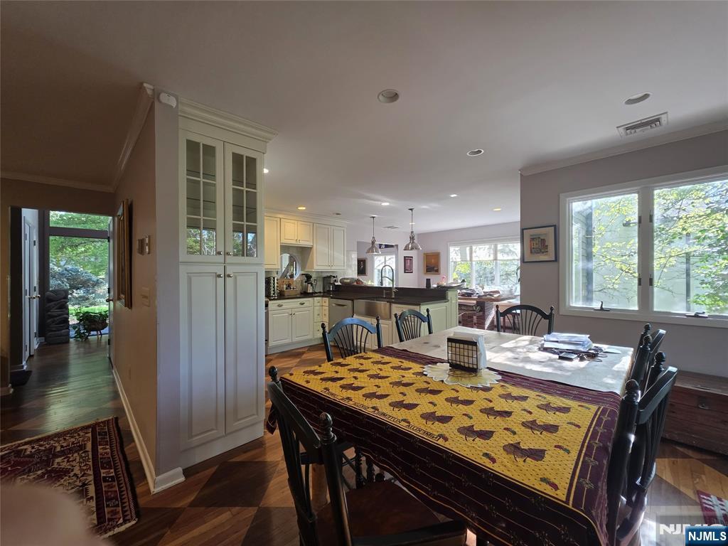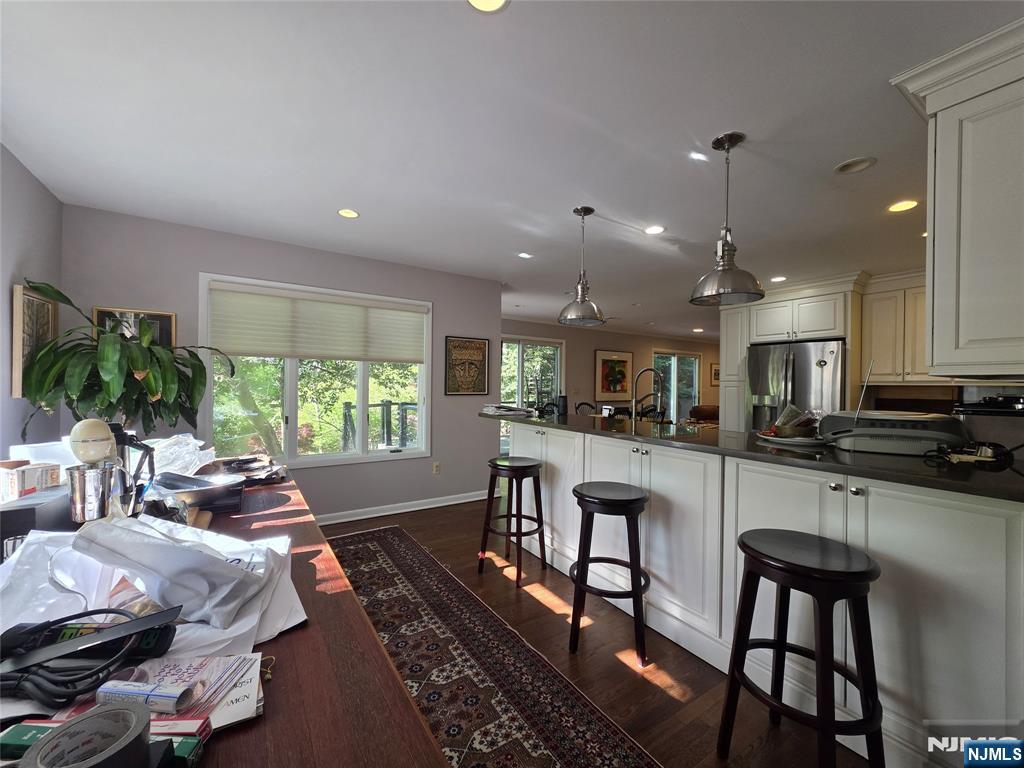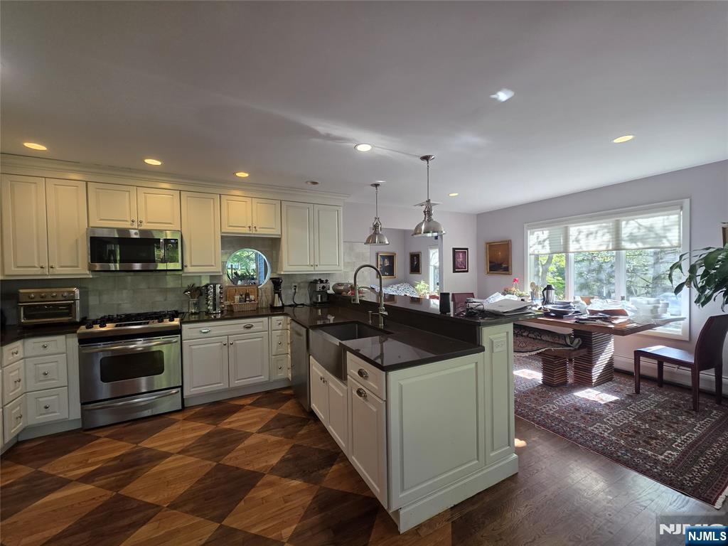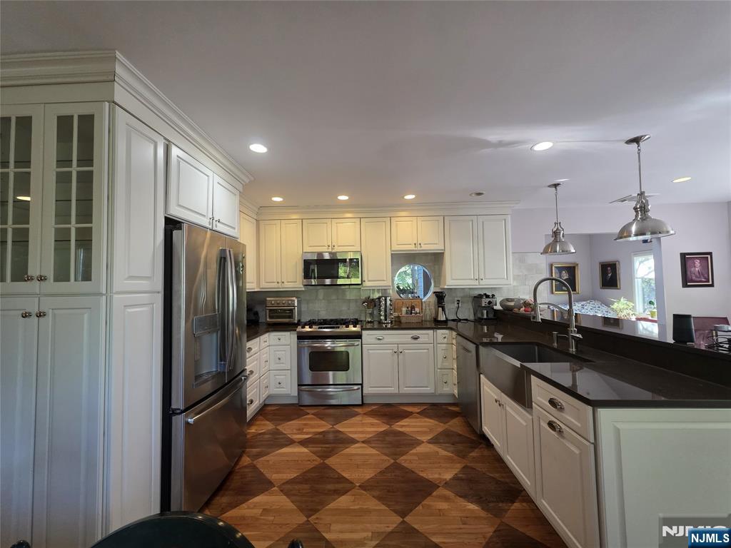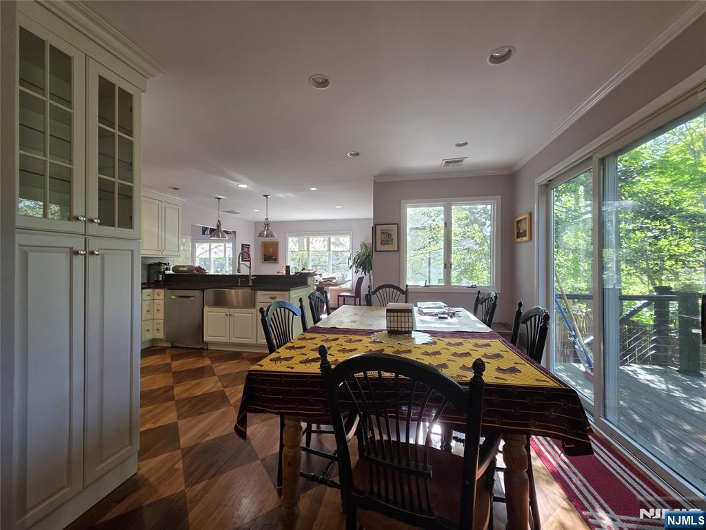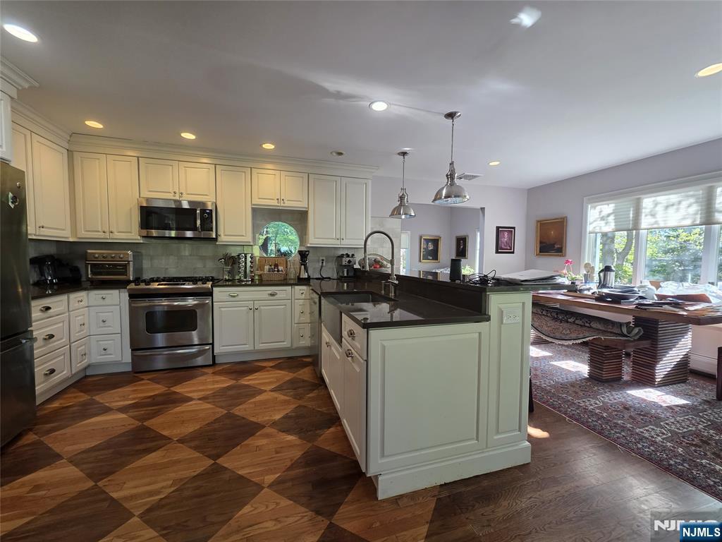 ***Please note, the home is currently in the process of packing, and we appreciate your understanding for any visible boxes or temporary clutter. Bedroom photos are not included at this time as they are being packed*** Welcome to this beautifully maintained home located on a quiet, tree-lined street in the highly sought-after town of Closter. The welcoming entrance features high ceilings, skylights, and an elegant staircase, creating a warm and inviting first impression. The home offers a bright and functional layout with spacious living areas ideal for everyday living and entertaining. The first floor features a formal living room, an additional living area, dining room, eat-in kitchen with direct access to the backyard, office, half bath, and sliding doors leading to a deck and backyard, along with a two-car garage. The property also offers beautiful front and back yards, with a fish pond located in the side yard near the backyard exit. The second floor offers three bedrooms sharing a full bath, plus an oversized primary bedroom with a wide closet and primary bath. The ground level is designed for entertainment and features a spacious layout ideal for a playroom, TV room, or family room, with direct access to the backyard.