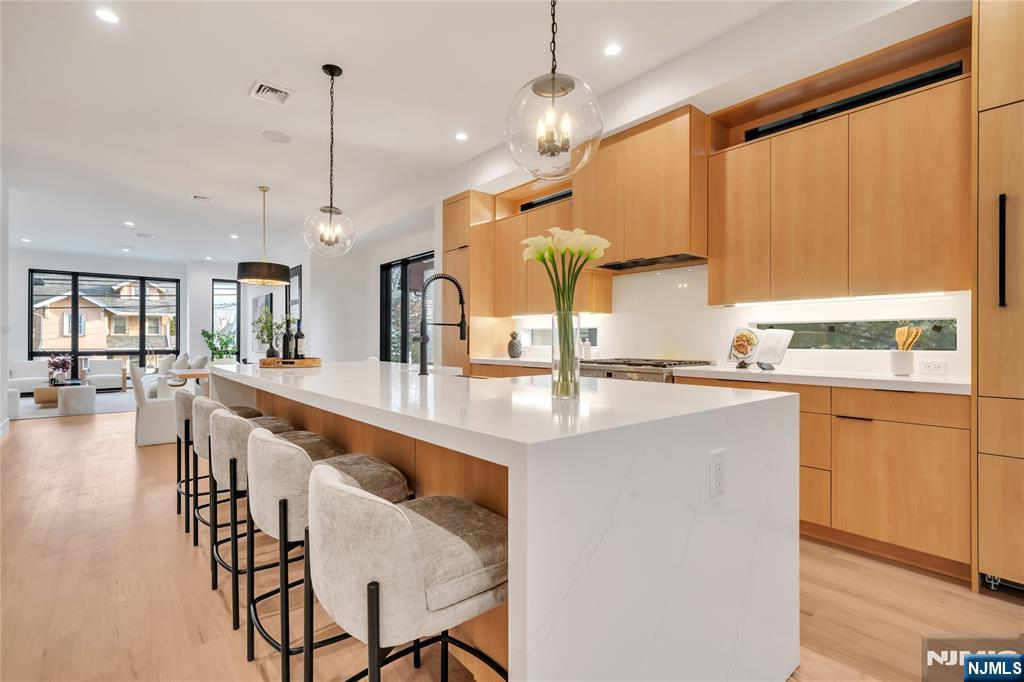 INTRODUCING 1047 ANDERSON AVE, AN OVER-SIZED, ONE OF A KIND, TOWNHOUSE FEATURING 4100 SQ FT, BUILT BY MB CUSTOM BUILDERS. THIS LUXURIOUS HOME BOASTS 3 LEVELS OF LIVING SPACE. MAIN LEVEL- 10' CEILINGS, OPEN CONCEPT, FAMILY ROOM WITH FIREPLACE HIGHLIGHTED BY WOOD AND BLACK ACCENTS AND INTERGRATED LIGHTING IN SHELVES, DINING ROOM, MODERN EAT IN KITCHEN OVERSIZED ISLAND, GE MONOGRAM/CAFE APPLIANCES, AND UNDER MOUNT CABINET LIGHTING, BUILT IN BREAKFAST NOOK, LIVING ROOM WITH ACCENT WALL, AND SLIDING GLASS DOOR TO DECK....2ND FLOOR-PRIMARY BEDROOM WITH FIREPLACE, TWO WALK IN CLOSETS, OVERSIZED WINDOWS AND SPA LIKE BATH WITH HIS AND HER RAIN SHOWER AND TUB, 3 ADDITIONAL JUNIOR SUITES WITH WALK IN CLOSETS AND LAUNDRY COMPLETE THE 2ND FLOOR. GROUND FLOOR- RECREATION ROOM WITH 12’ CEILINGS, WET BAR, FULL BATH, SLIDING GLASS DOOR TO A NICE SIZE YARD, GARAGE, AND MUDROOM....ADDITIONAL FEATURES-MULTI ZONE HEATING AND COOLING, CUSTOM MOLDINGS THROUGHOUT, SECURITY CAMERAS, AND MULTI ZONE SPEAKER SYSTEM.