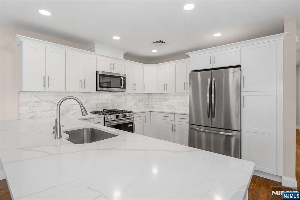 Luxury newer-construction end-unit townhome in highly desirable Waldwick, Bergen County! Rare no HOA and large private yard space. Enjoy 4 bedrooms, 3.5 baths, fenced backyard, and modern finishes throughout. Prime location on a quiet non cut through street with end of block access to the Waldwick train station for an easy NYC commute, 5-10 min walk to restaurants and shops, 10 mins to downtown Ridgewood, and 10 mins to 3 Whole Foods and 3 major malls. Top rated schools nearby. Main floor features a chef’s kitchen with brand new quartz countertops, stainless steel appliances, dining area, and open concept living room with a half bath. Upstairs offers 3 bedrooms and 2 full baths, including a primary suite with walk in closet and en suite bath. Ground level includes a garage, additional parking, 4th bedroom, and full bath. Taxes TBD.