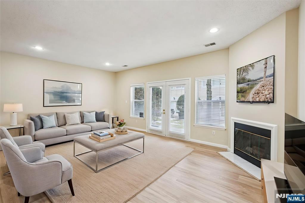 Amazing location at Brittany Chase: an updated three-bedroom townhome with a fully finished basement- all ready for you to move right in- Welcome home! Features include: New floors and freshly painted (3/2026) creating a bright, open floor plan. Very spacious living and dining room with a gas fireplace. The kitchen features stainless steel appliances and a charming breakfast room; the entry includes a large closet and a powder room. Double french doors lead to the patio and community courtyard area for your outdoor enjoyment. Second floor includes- Primary bedroom: impressive tray ceiling, a huge walk-in closet, and a private bathroom suite: stall shower, soaking tub and vanity with double sinks and marble countertops. 2 large bedrooms, a full bath, and a conveniently located laundry room. Full finished heated basement: 2 recreational rooms with 2 wonderful storage closets. Additional attributes: New furnace and Central air (2025) great home for entertaining, tons of windows and natural light, recessed lighting, newer custom blinds and one car garage. Enjoy Community life: Outdoor pool, club house, gym, & tennis courts. Wonderful location. Top rated school system, town community activities and sports programs. Minutes to shopping, Traders Joes, Whole Foods, Wayne Public Library, restaurants, park, pharmacy, major highways, and NJ Transit Bus and Train Center, and bus stop.
