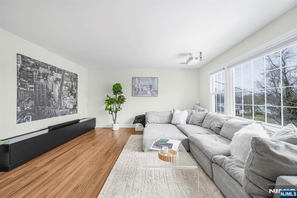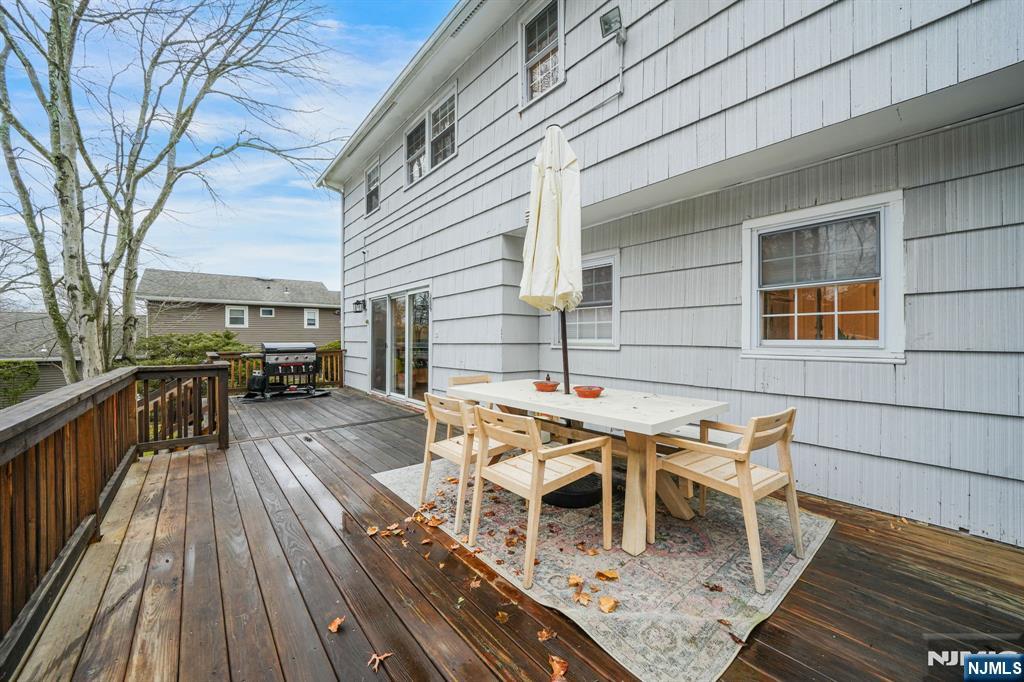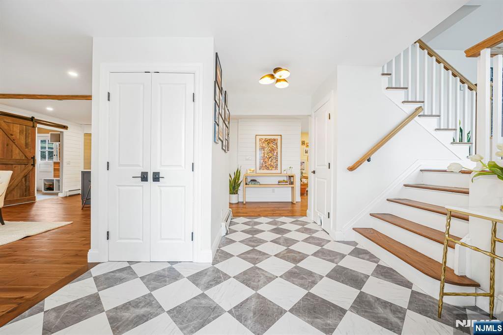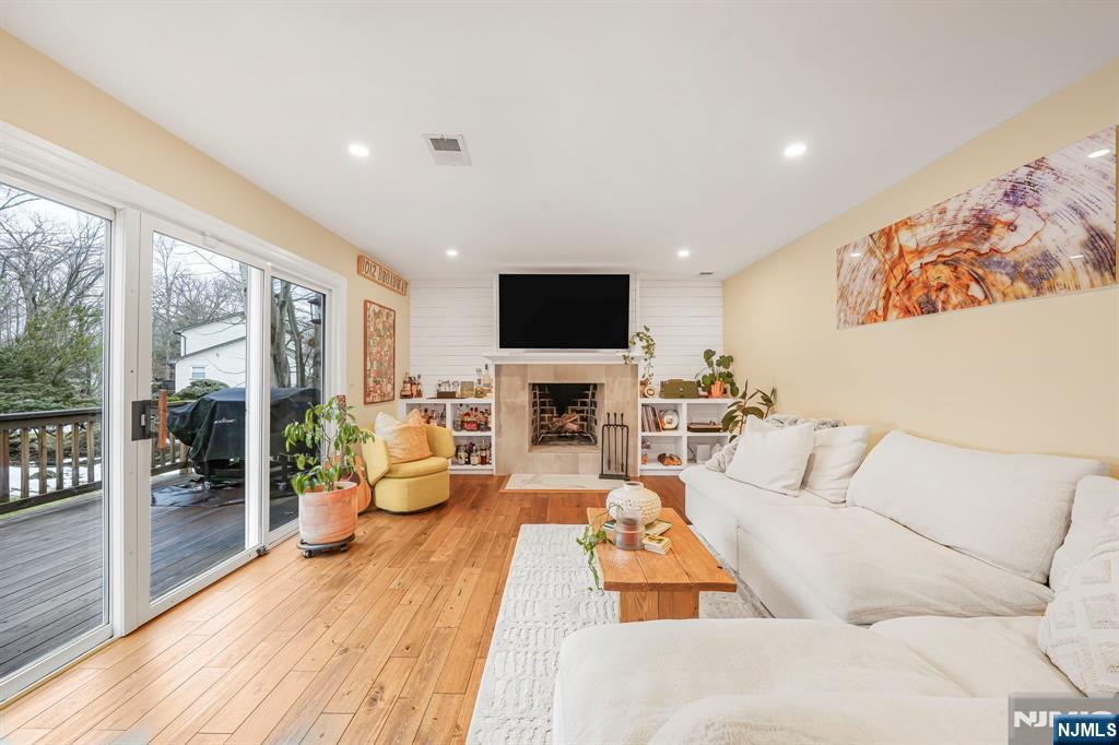 Renovated kitchen, charming front porch, spacious living areas, deck and stone patio, & flexible bonus space come together in this beautifully updated home(2022). A welcoming front porch sets the tone and offers the perfect place to enjoy morning coffee or unwind in the evening. Inside, hardwood floors and abundant natural light create a warm & inviting feel throughout the main living spaces. A bright living room provides a comfortable place to relax, while the inviting family room with fireplace & built-ins creates the perfect setting for everyday living or gathering. The renovated chef’s kitchen is the centerpiece of the home. It features crisp white cabinetry, stainless steel appliances, a striking statement range hood, generous prep space, and a large center island with seating and a built-in wine refrigerator. Thoughtful details including wood beam accents, Edison-style pendant lighting, shiplap touches, and a sliding barn door add warmth and character while maintaining a fresh, modern style. The kitchen flows seamlessly into the dining and living areas, creating an open layout ideal for everyday living and entertaining. The home offers four spacious bedrooms, including a primary suite with an updated ensuite bath featuring modern finishes and a walk-in glass shower. Outdoor living includes a large deck and stone patio overlooking the yard. Enjoy all that Wayne offers including great schools, parks, shopping, dining, major highways, & convenient NYC transportation.