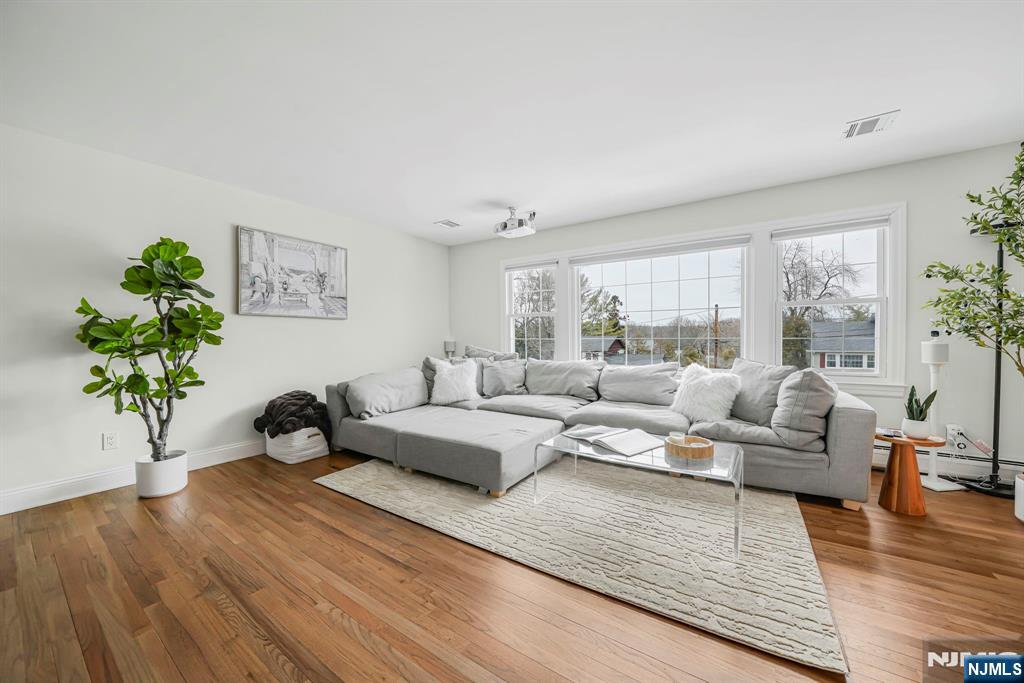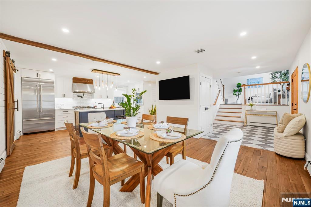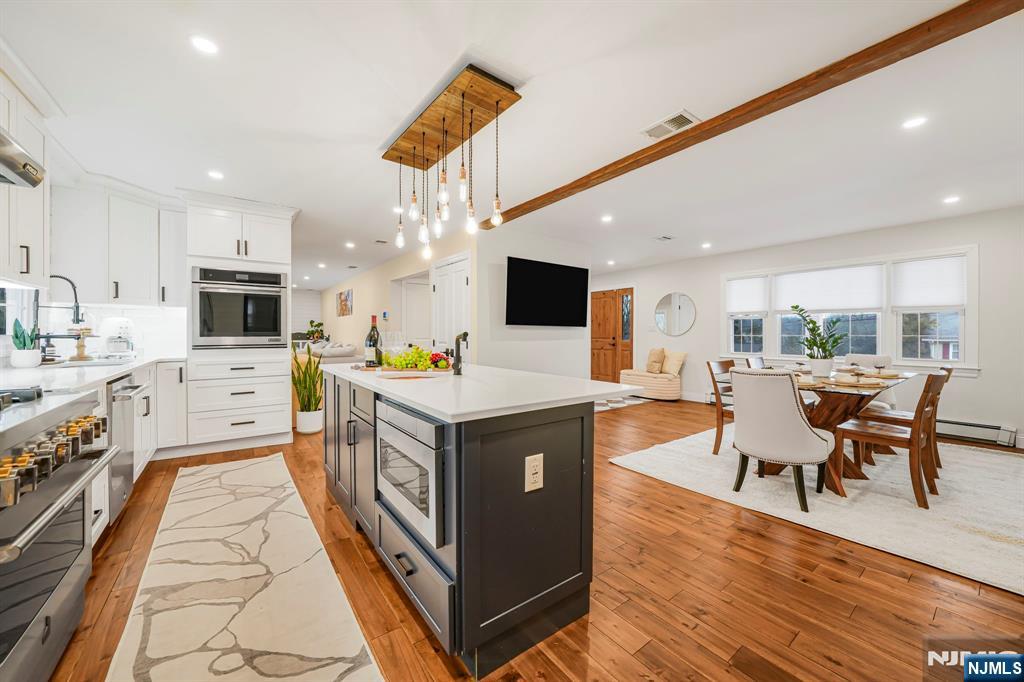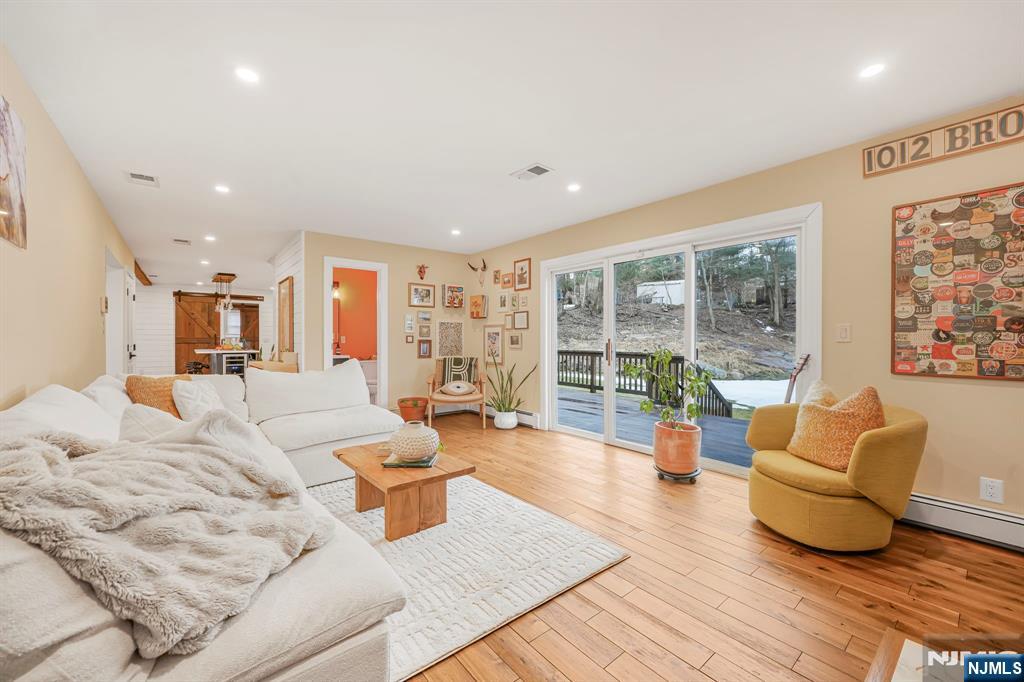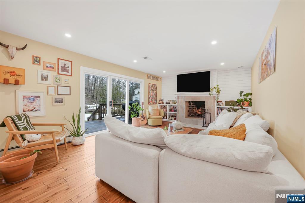 Renovated kitchen, charming front porch, spacious living areas, deck and stone patio, & flexible bonus space come together in this beautifully updated home(2022). A welcoming front porch sets the tone and offers the perfect place to enjoy morning coffee or unwind in the evening. Inside, hardwood floors and abundant natural light create a warm & inviting feel throughout the main living spaces. A bright living room provides a comfortable place to relax, while the inviting family room with fireplace & built-ins creates the perfect setting for everyday living or gathering. The renovated chef’s kitchen is the centerpiece of the home. It features crisp white cabinetry, stainless steel appliances, a striking statement range hood, generous prep space, and a large center island with seating and a built-in wine refrigerator. Thoughtful details including wood beam accents, Edison-style pendant lighting, shiplap touches, and a sliding barn door add warmth and character while maintaining a fresh, modern style. The kitchen flows seamlessly into the dining and living areas, creating an open layout ideal for everyday living and entertaining. The home offers four spacious bedrooms, including a primary suite with an updated ensuite bath featuring modern finishes and a walk-in glass shower. Outdoor living includes a large deck and stone patio overlooking the yard. Enjoy all that Wayne offers including great schools, parks, shopping, dining, major highways, & convenient NYC transportation.