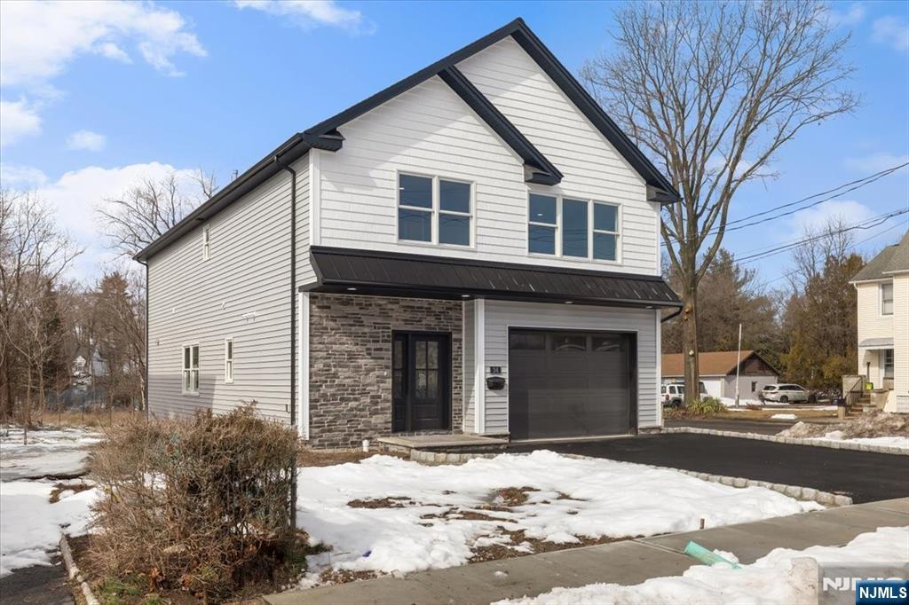 Beautifully crafted custom modern home offering a desirable no-step entry and thoughtfully designed living spaces throughout. The main level features an open-concept layout where the living, dining, and kitchen areas flow seamlessly together, creating a bright and inviting atmosphere ideal for everyday living and entertaining. The two-tone custom kitchen showcases quality wood cabinetry with soft-close drawers, dedicated spice storage, quartz countertops, classic subway tile backsplash, recessed lighting, and Samsung stainless appliances including microwave, dishwasher, and stove. An impressive 8-foot sliding door opens to an expansive paver patio extending approximately 46 feet, perfect for outdoor gatherings. Upstairs, four spacious bedrooms provide comfortable accommodations, including a primary suite featuring a large walk-in closet with California Closets and a private bath. One secondary bedroom offers its own en-suite bath with stall shower, while the remaining bedrooms include generous double closets and easy access to the full hall bath. A dedicated laundry room with cabinetry and folding counter adds everyday convenience. Additional highlights include Anderson windows, Navien tankless water heater, two-zone forced air and central systems, 200-amp electrical service, EV charging connector in garage and a 25-year asphalt shingle roof. The attic offers extensive plywood flooring for storage. Property includes a paver patio, level side and backyard, survey available.