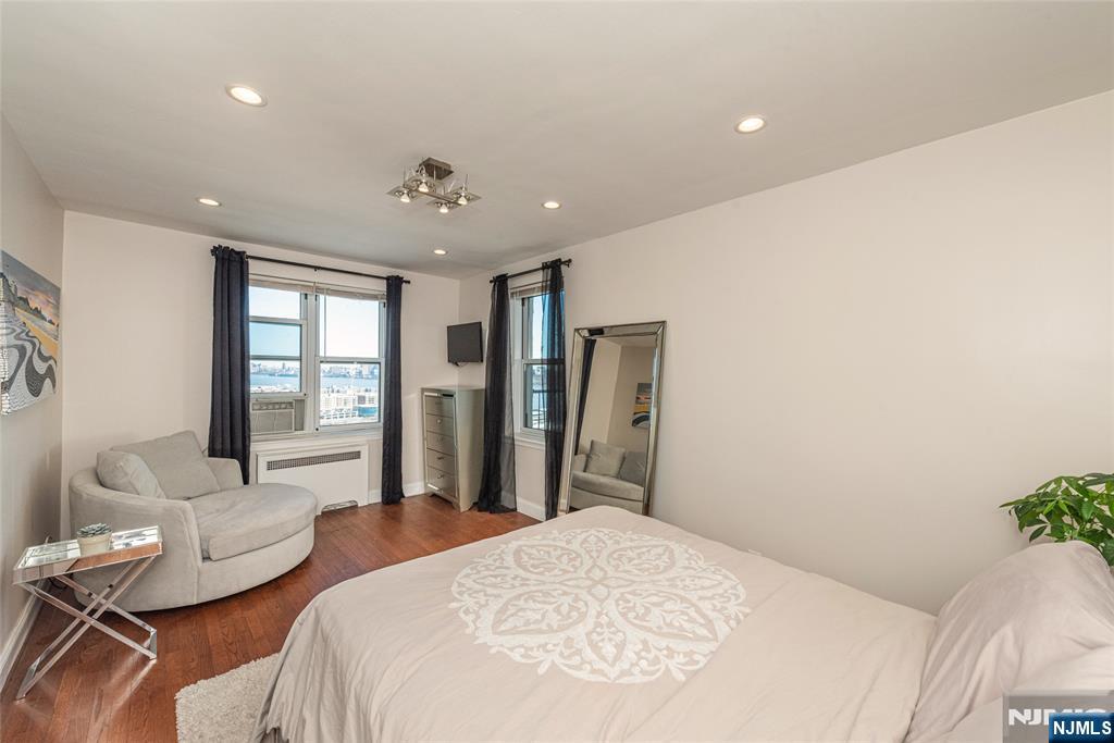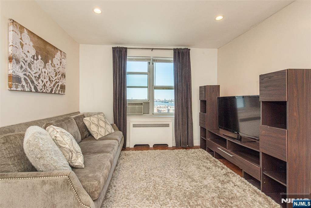 Light, bright, and sophisticated! This delightful turn-key one-bedroom co-op offers stunning Hudson River and NYC skyline views. Step inside to a generous foyer with multiple closets and an ideal nook for a home office. Living larger than its footprint suggests, the open-concept layout features hardwood floors throughout the gracious living and dining area. The modern galley kitchen checks every box with a large undermount sink, stainless steel appliances, chic gray solid-surface countertops, and abundant cabinetry. The pristine full bath is elegantly renovated in marble. The spacious corner bedroom enjoys double-exposure natural light and includes a walk-in closet. Woodcliff Gardens is a beautifully maintained and landscaped cooperative community that welcomes your dog and offers an outdoor pool, hot tub, and panoramic view deck, a well-equipped exercise room, and spotless laundry facilities in each building. Just steps away is 167-acre Braddock Park with tennis courts, walking and jogging paths, picnic areas, and a dog run. Excellent NYC transportation is nearby, along with restaurants for every taste, Trader Joe’s, Whole Foods, Mitsuwa, Acme, boutique shops, and major retailers. Look no further—this charming home has everything you want and more!