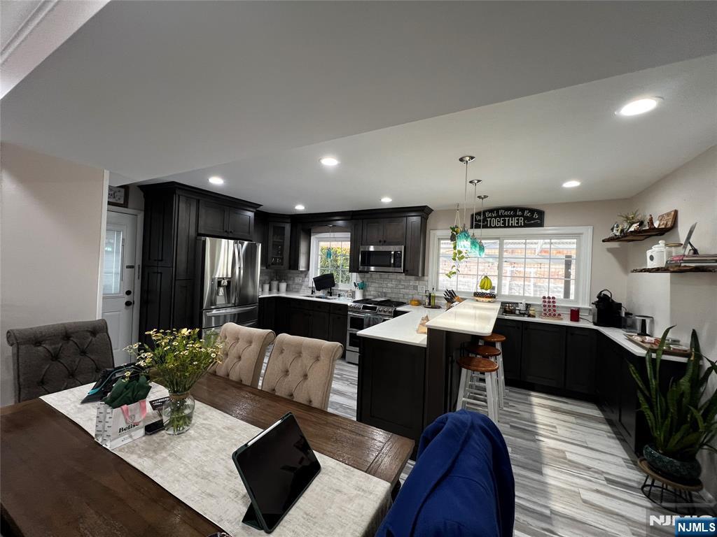 Exceptional and beautifully maintained two-family residence offering space, style, and modern upgrades throughout. This impressive property features 5 bedrooms and 3 full bathrooms, providing comfortable and versatile living. The first floor, renovated within the last five years, showcases a modern eat-in kitchen with quartz countertops, a charming coffee nook, and hardwood floors throughout, along with 3 bedrooms and 1 full bath. The second-floor unit offers 2 bedrooms and 1 full bath, with a kitchen updated in 2025. The finished basement adds valuable living space with a summer kitchen, family room, bonus room, and laundry area. Additional highlights include central air and heat throughout the home, newer windows, newer roof and siding, solar panels, water softener system, built-in speaker system, and a security system. The property also features an attached one-car garage, ample storage, and plenty of closets throughout the entire home. Enjoy outdoor living with a welcoming front terrace perfect for relaxing on summer days and a fully fenced backyard offering privacy and space for entertaining. A wonderful opportunity for owner-occupants or investors seeking a move-in-ready property with modern upgrades.Conveniently located near NYC.